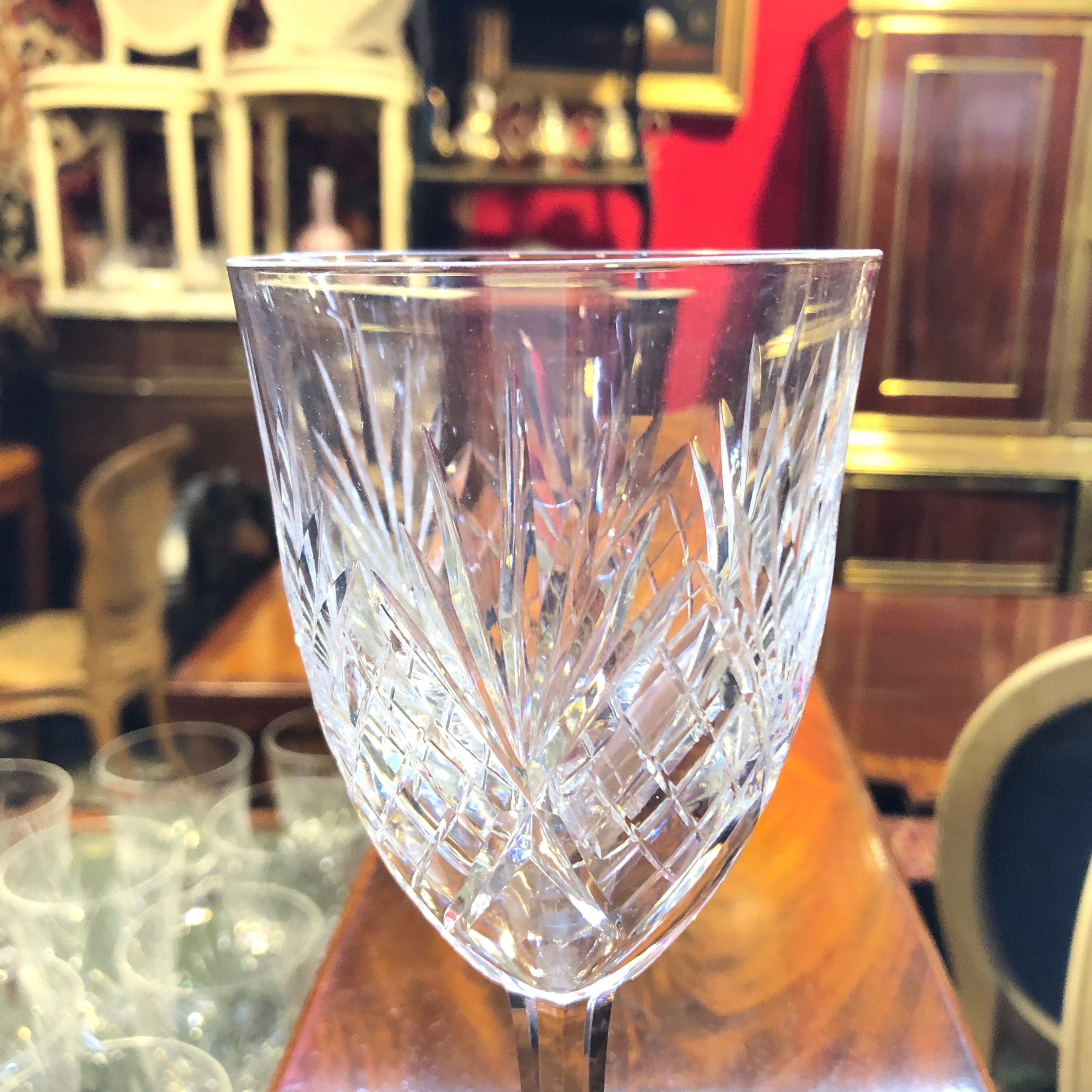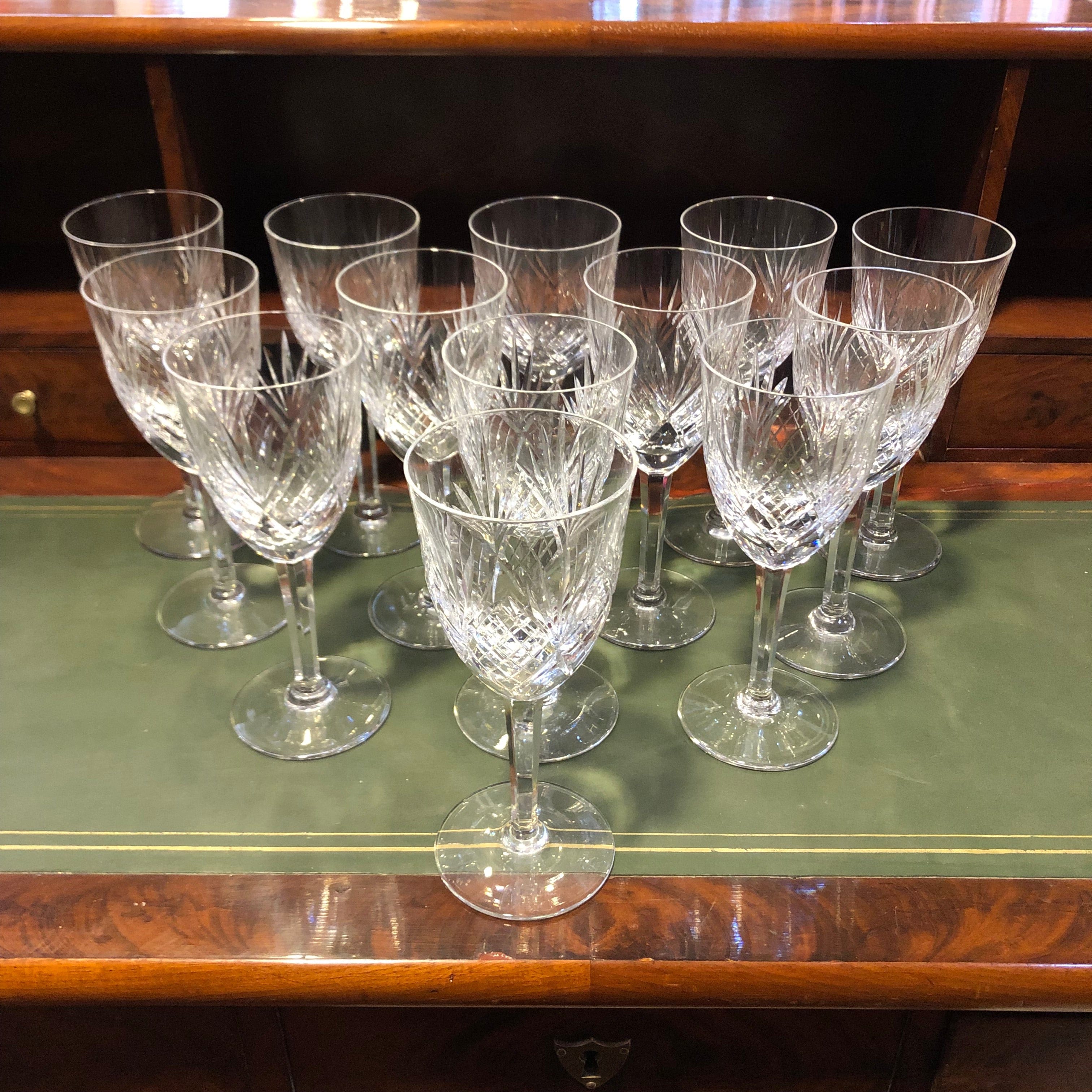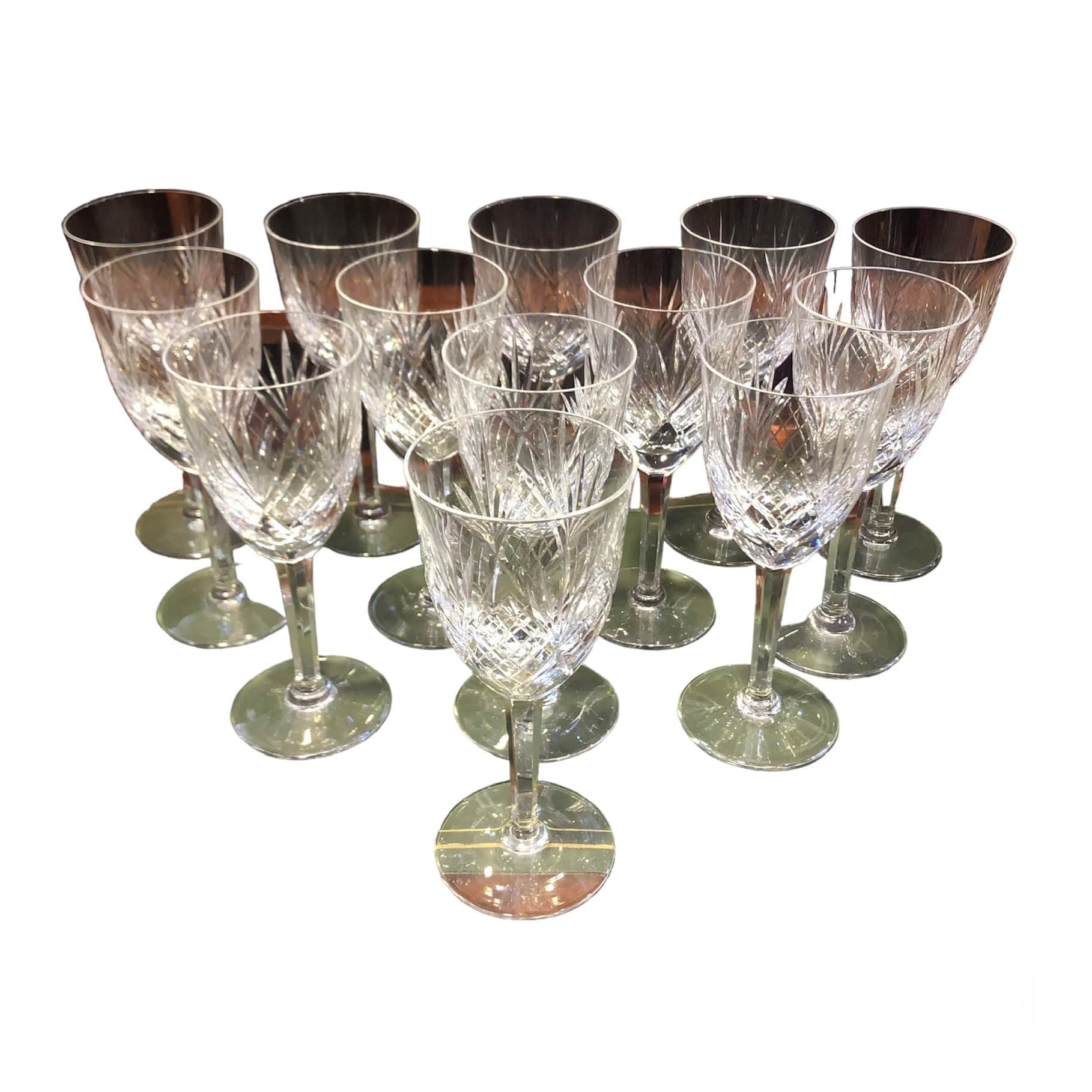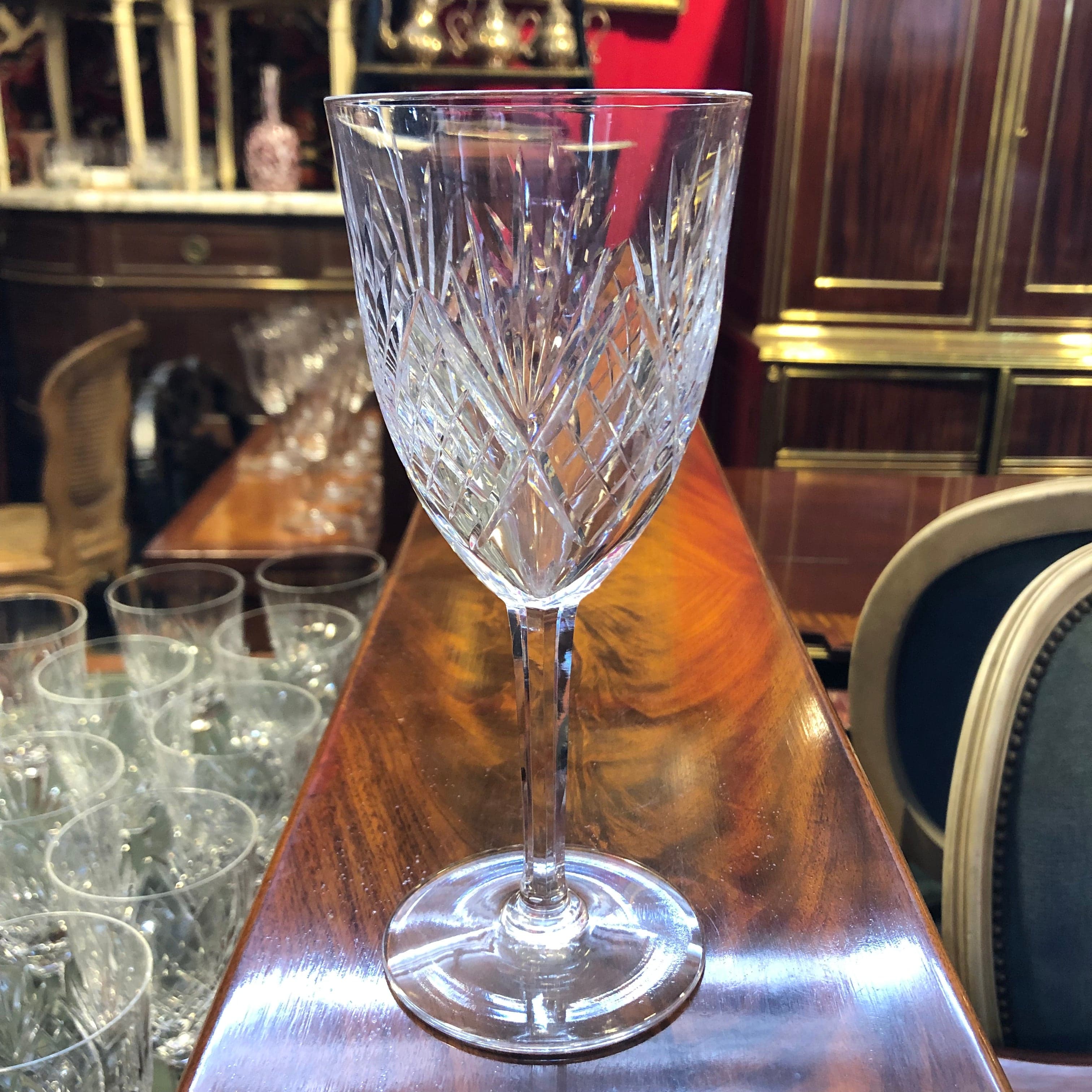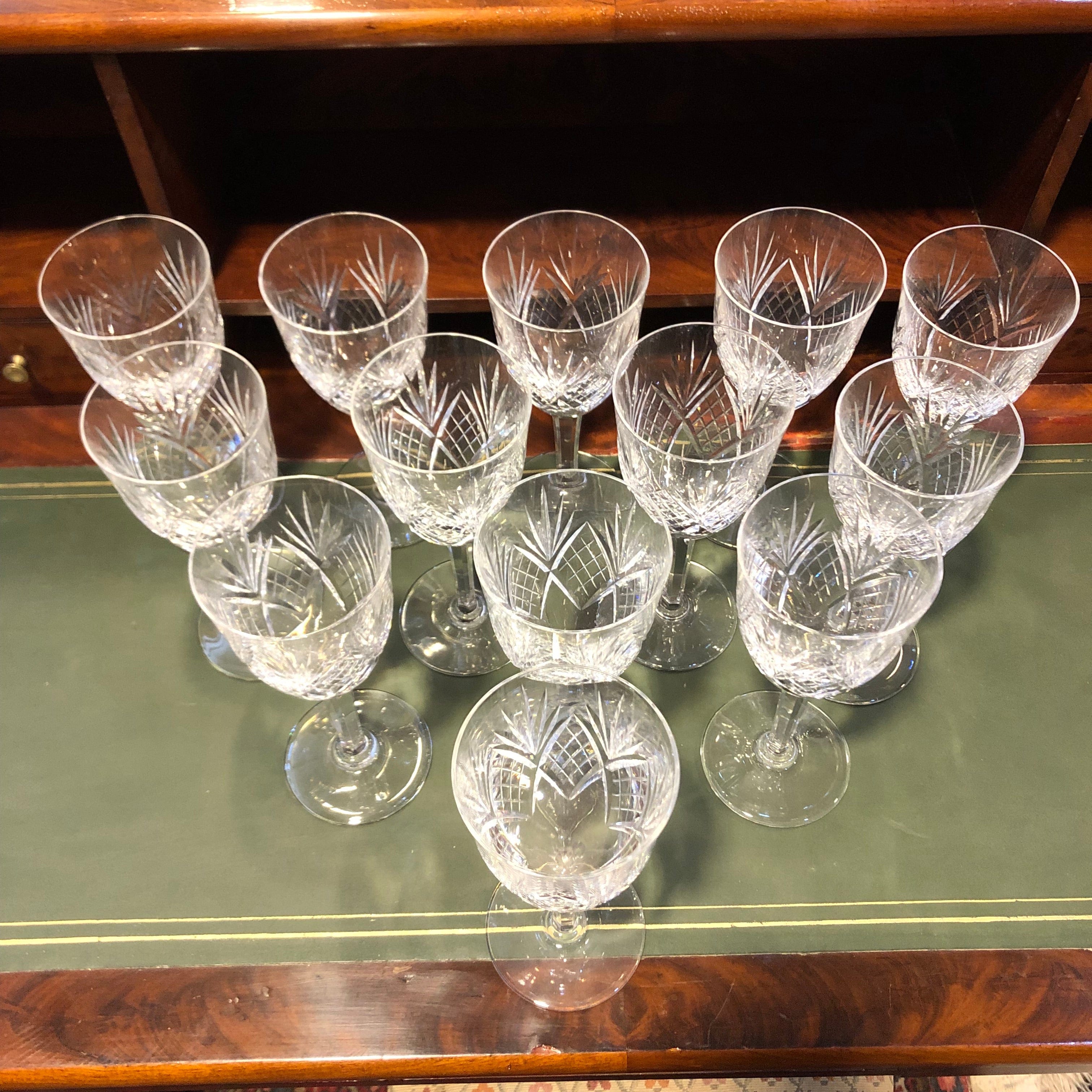 Magnifique et élégant ensemble de 13 verres à vin en cristal taillé, marque française Lorraine.