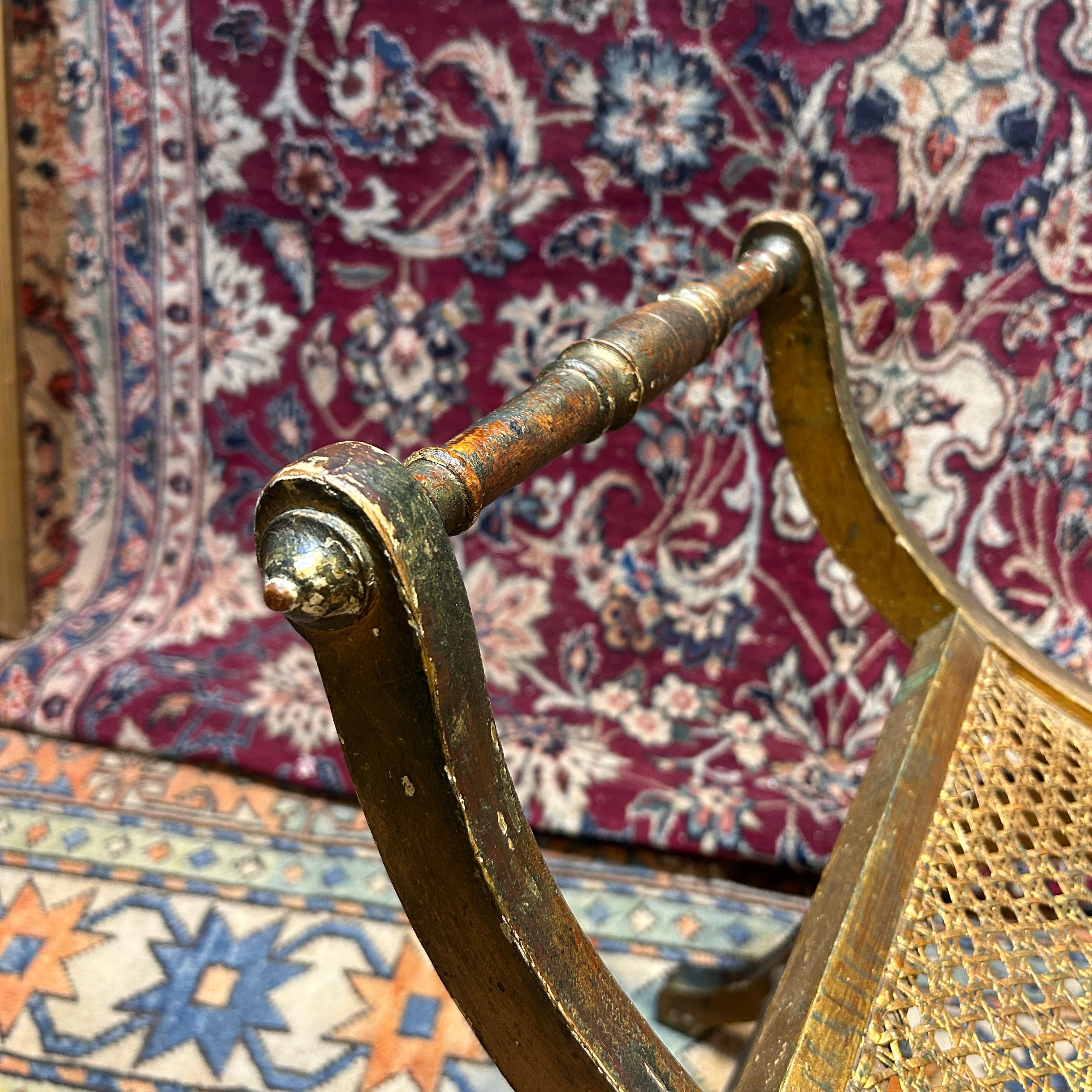 Curule stool in carved and formerly painted wood; cane seat; Louis XVI style; 19th century; height 53 cm.