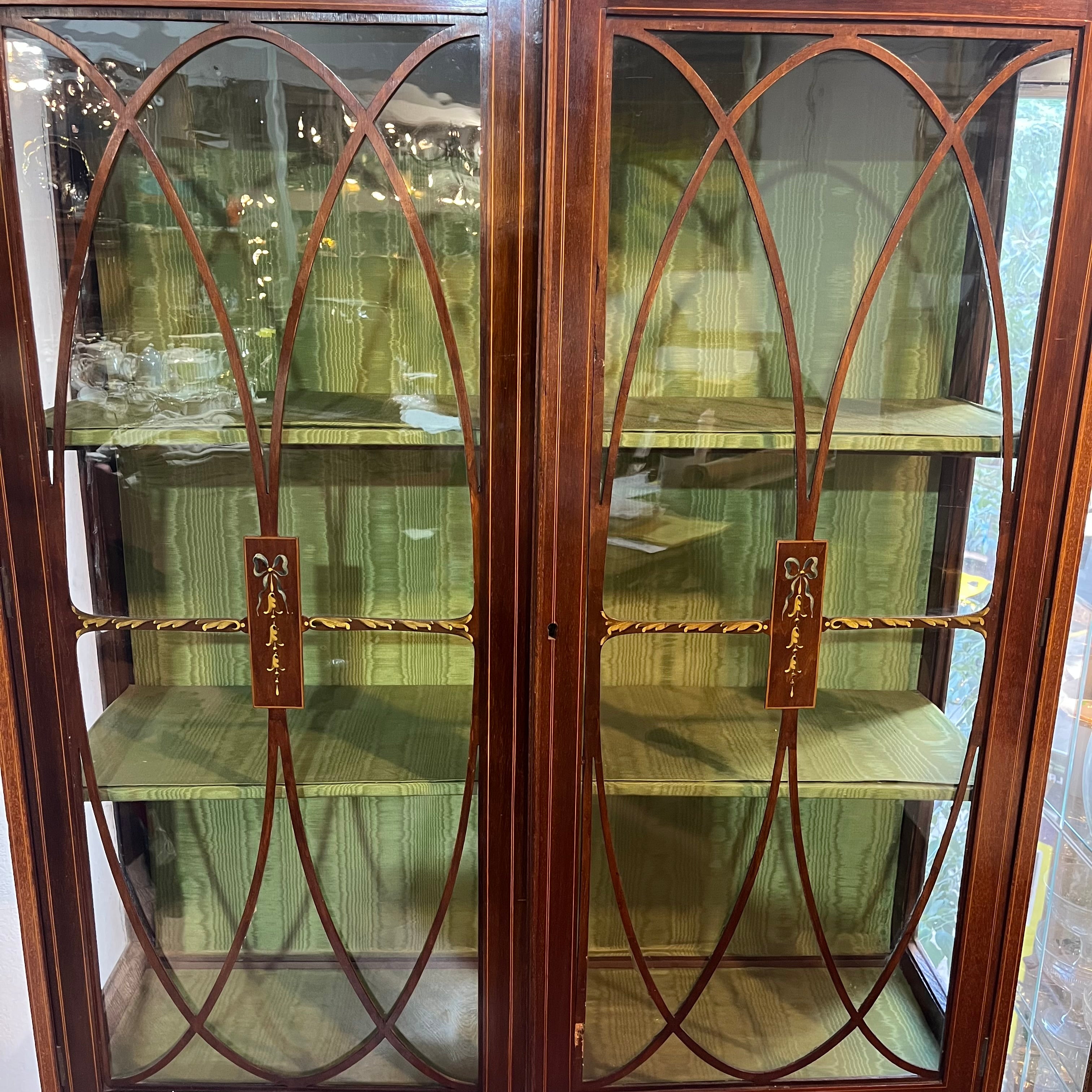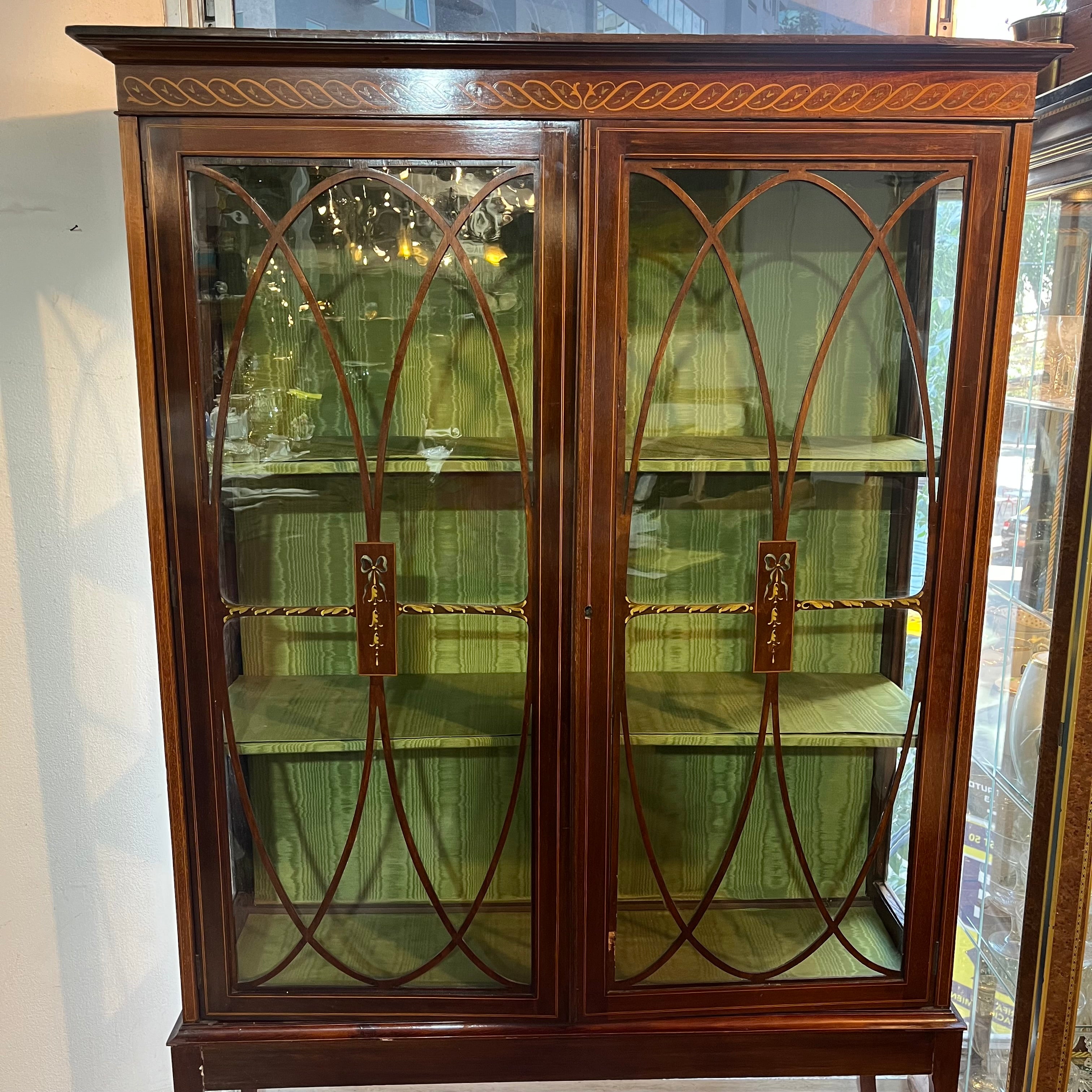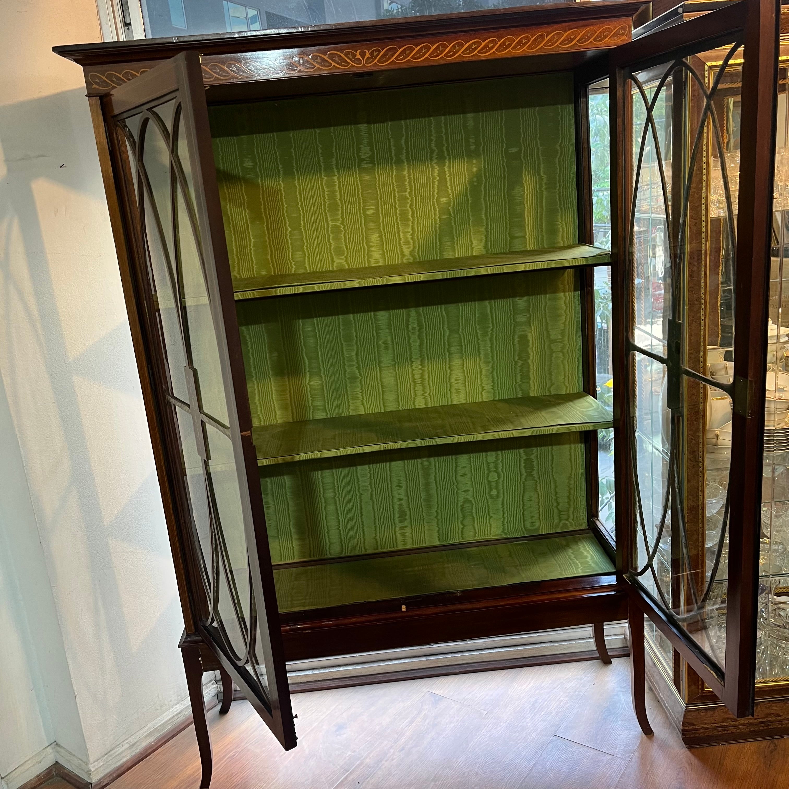 Hermosa vitrina inglesa estilo Edwardian de madera caoba