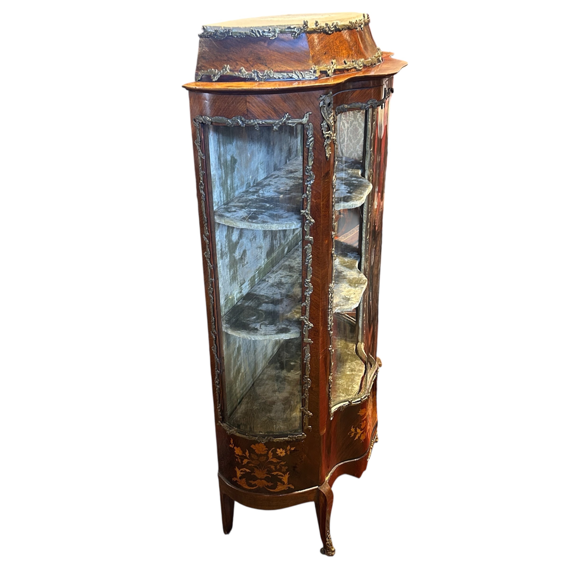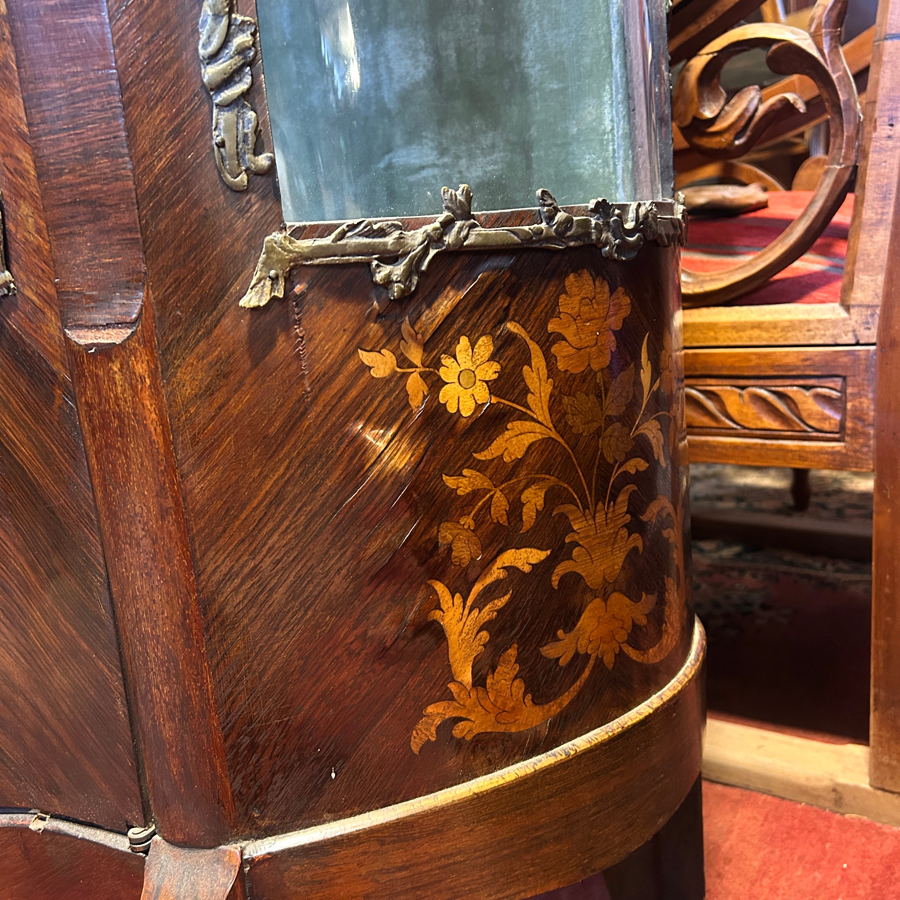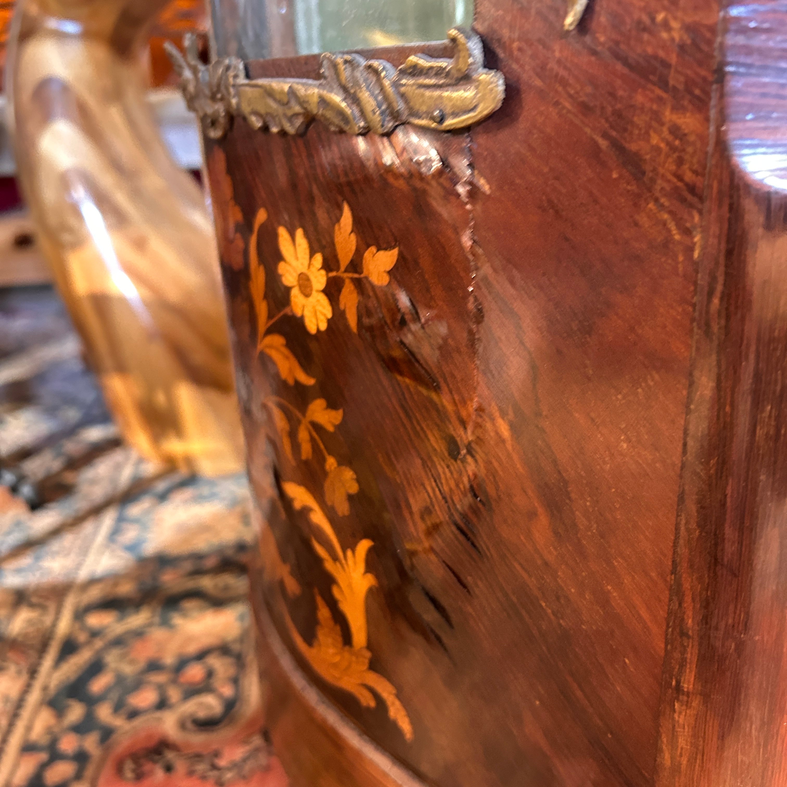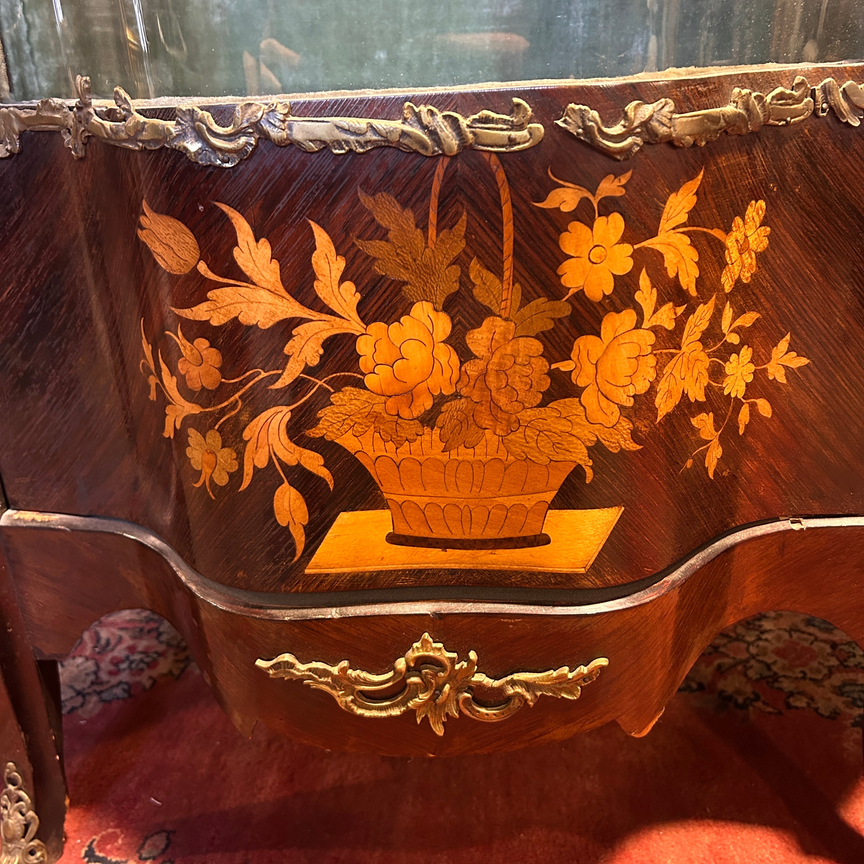 Pine wood display cabinet with flowers, glass top and Italian tableware; Napoleon III style; 166×83×40 cm.