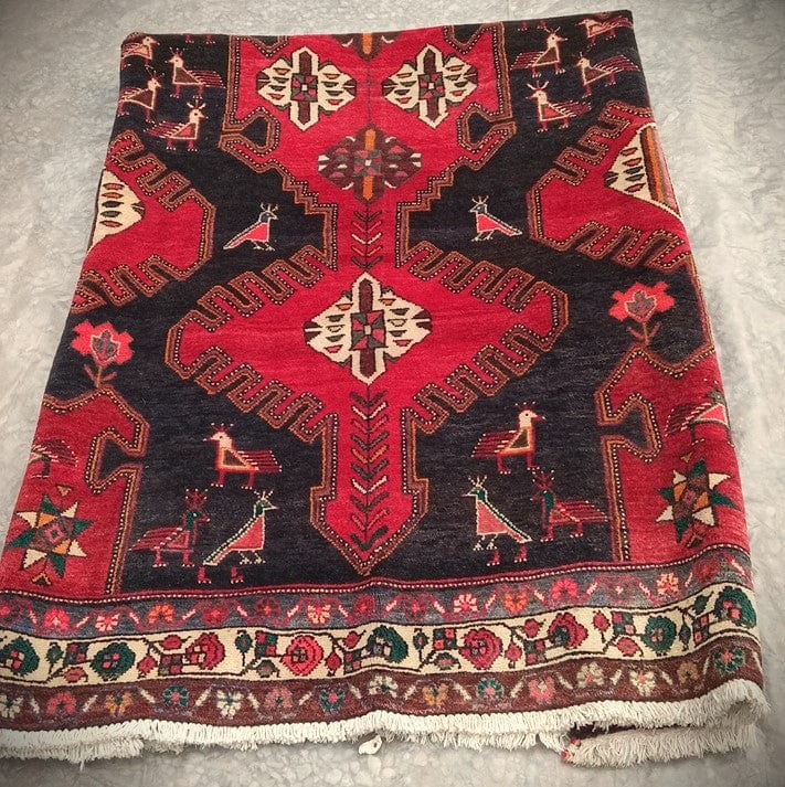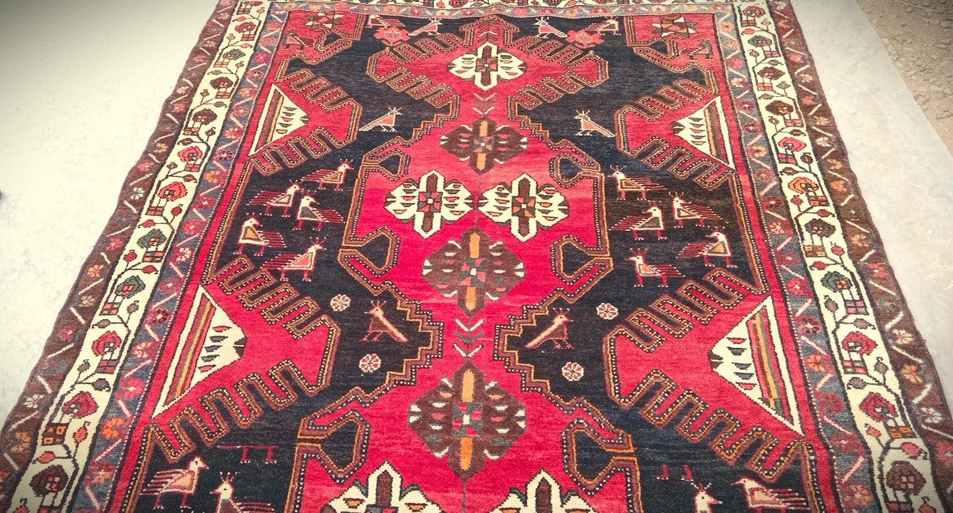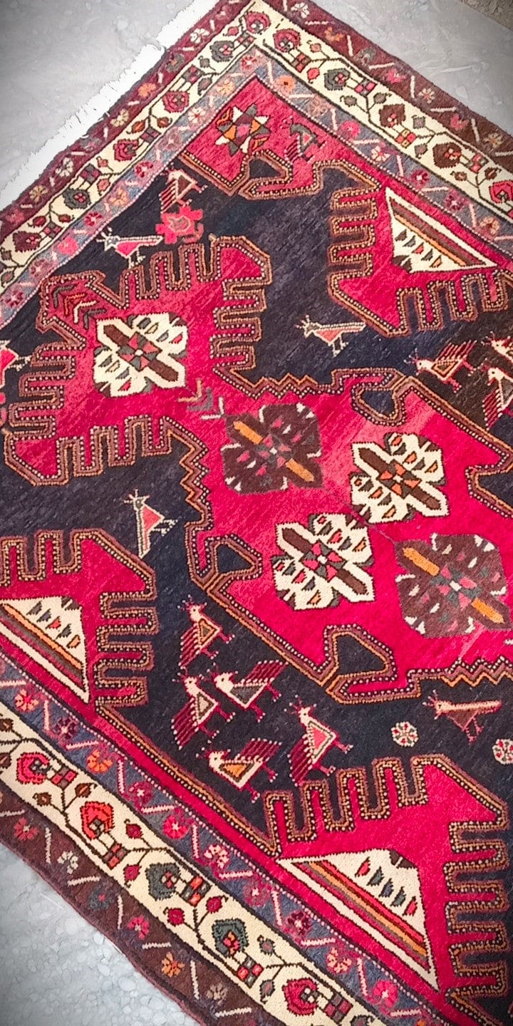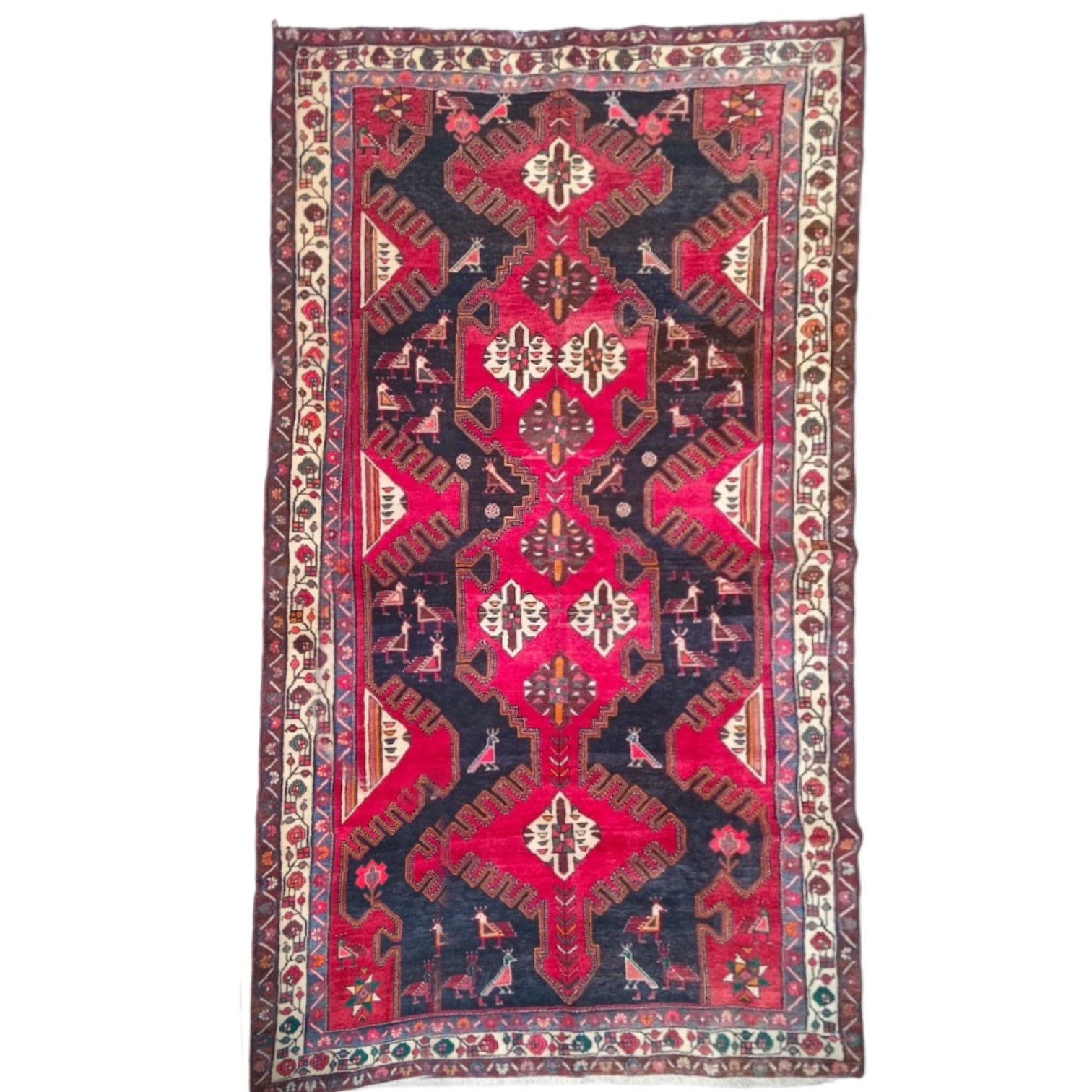 Beautiful contrast in its colors, large and defined geometric designs accompanied by bird figures.