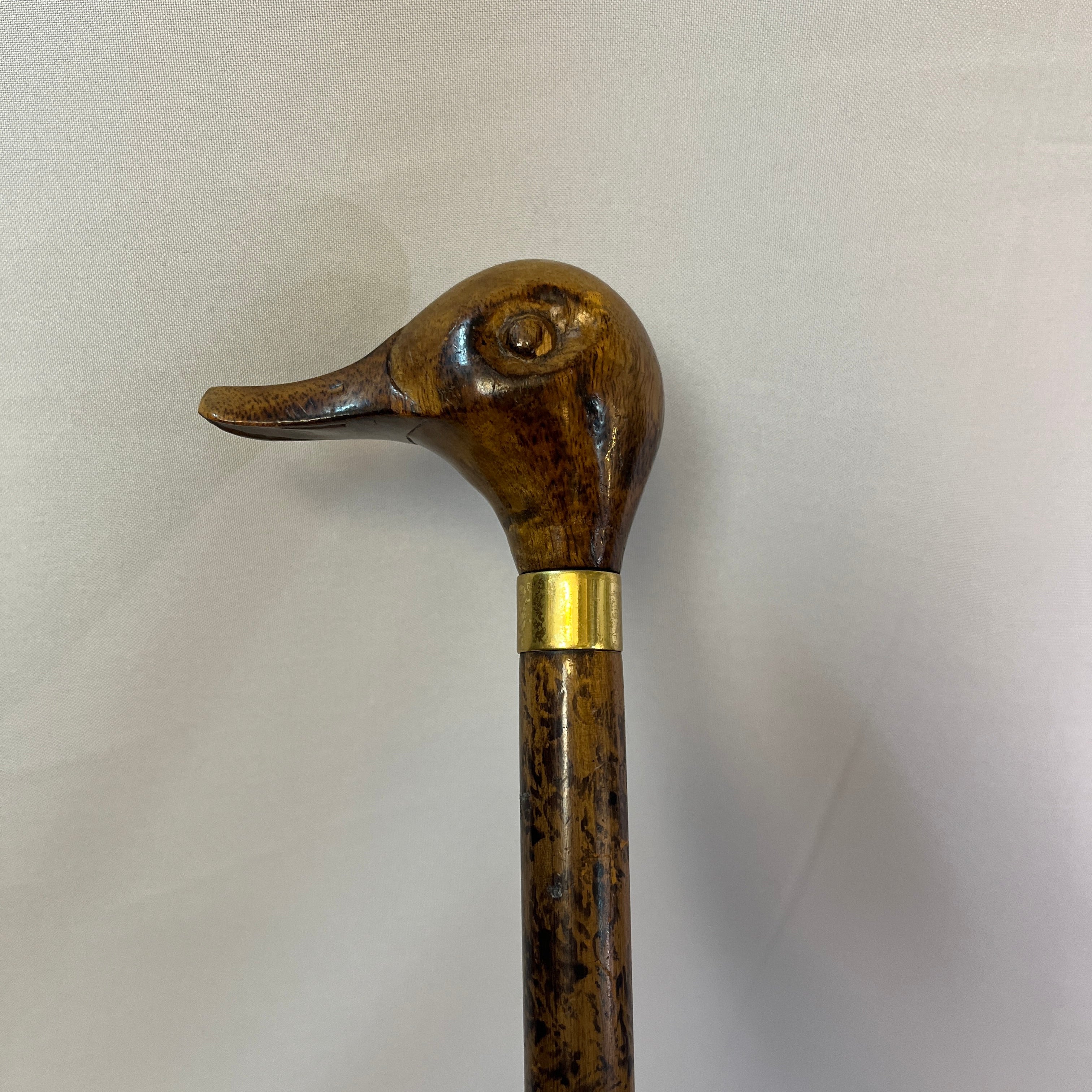 Bastón francés de madera empuñadura cabeza de pato y cintillo de bronce