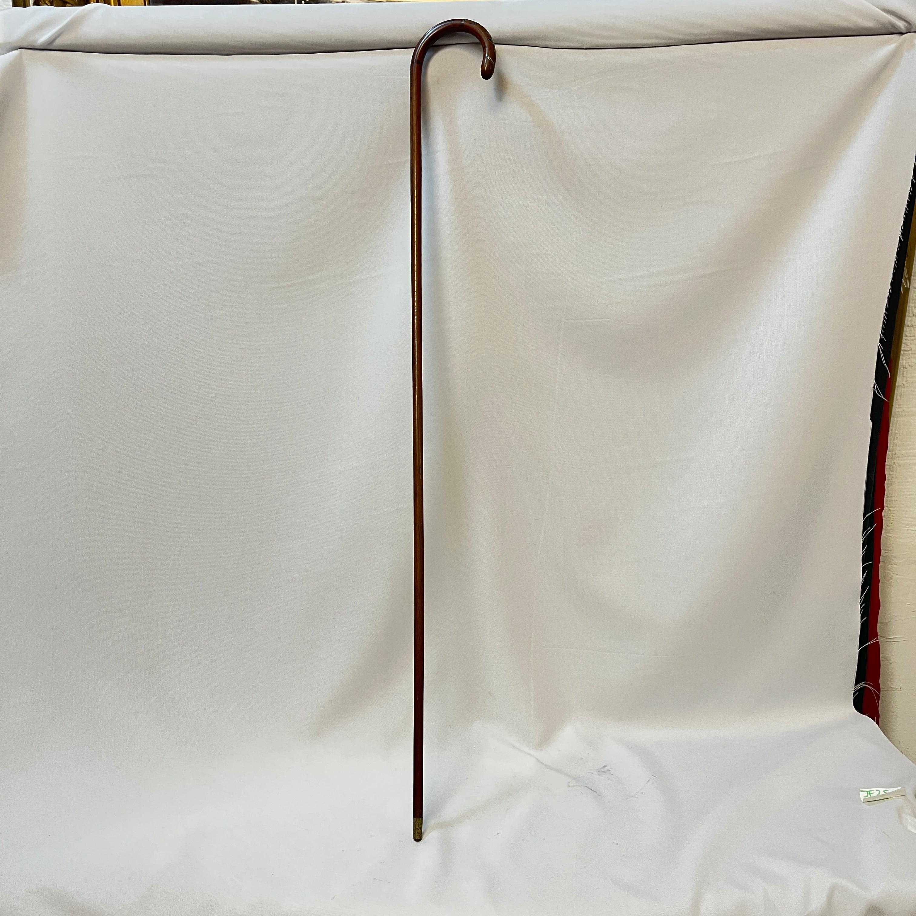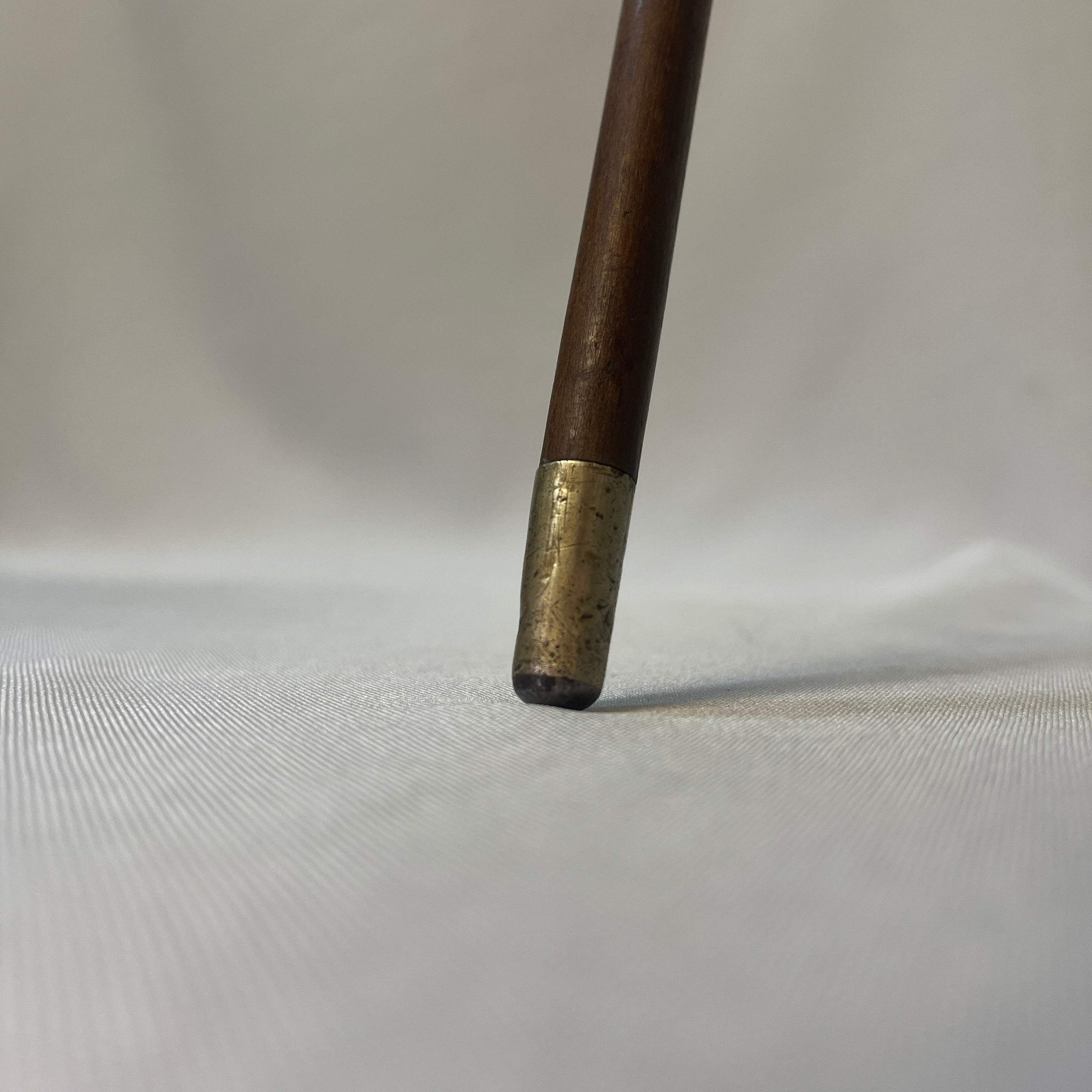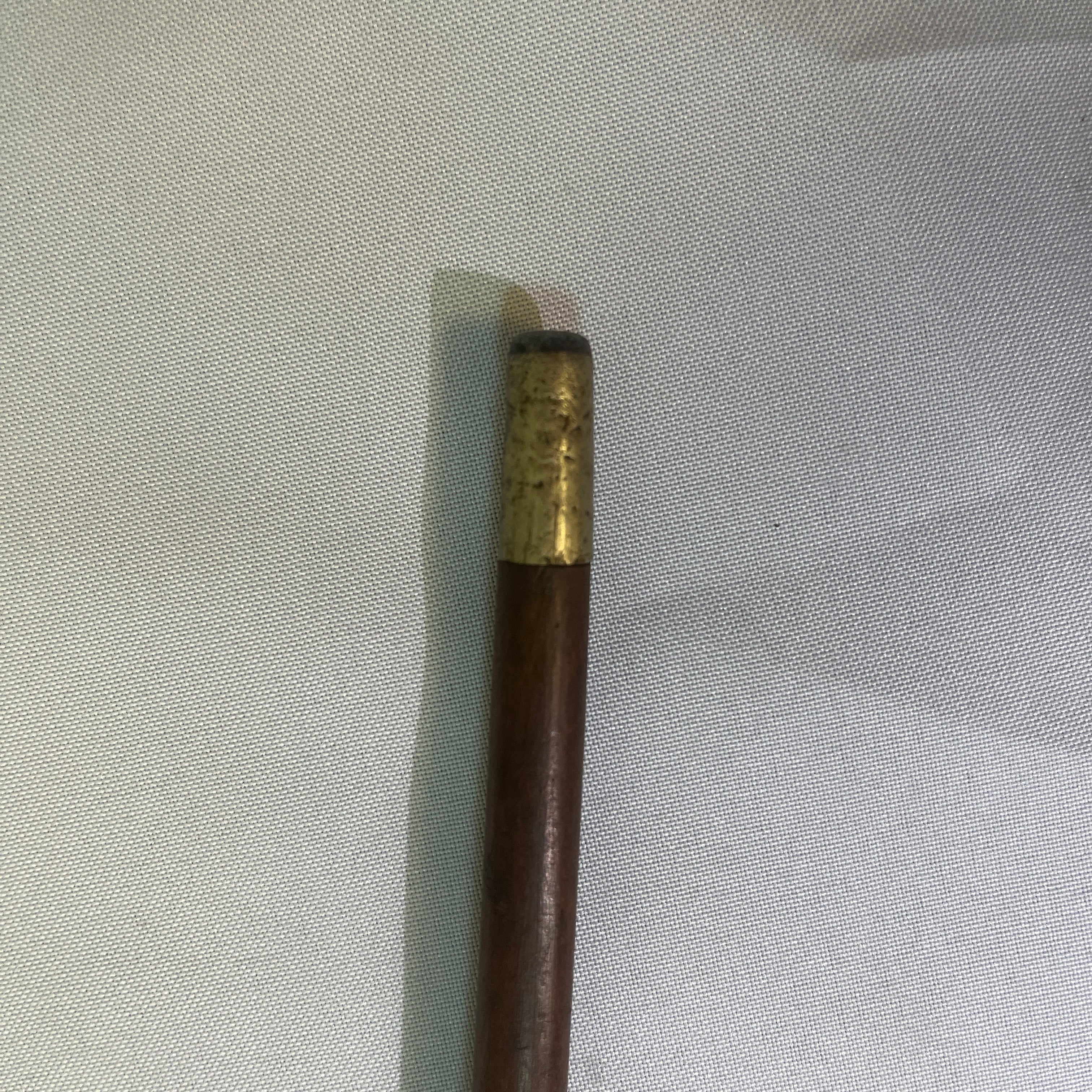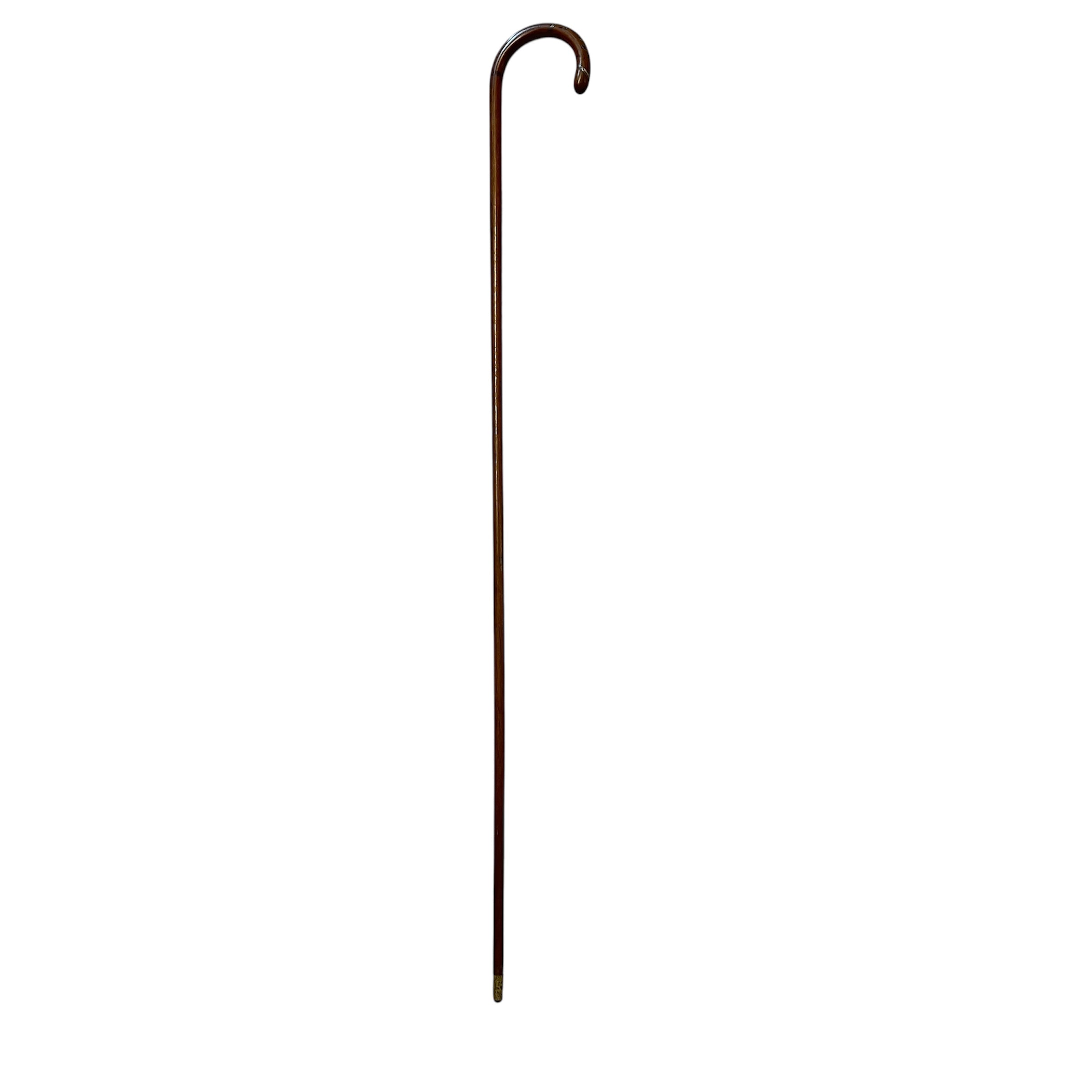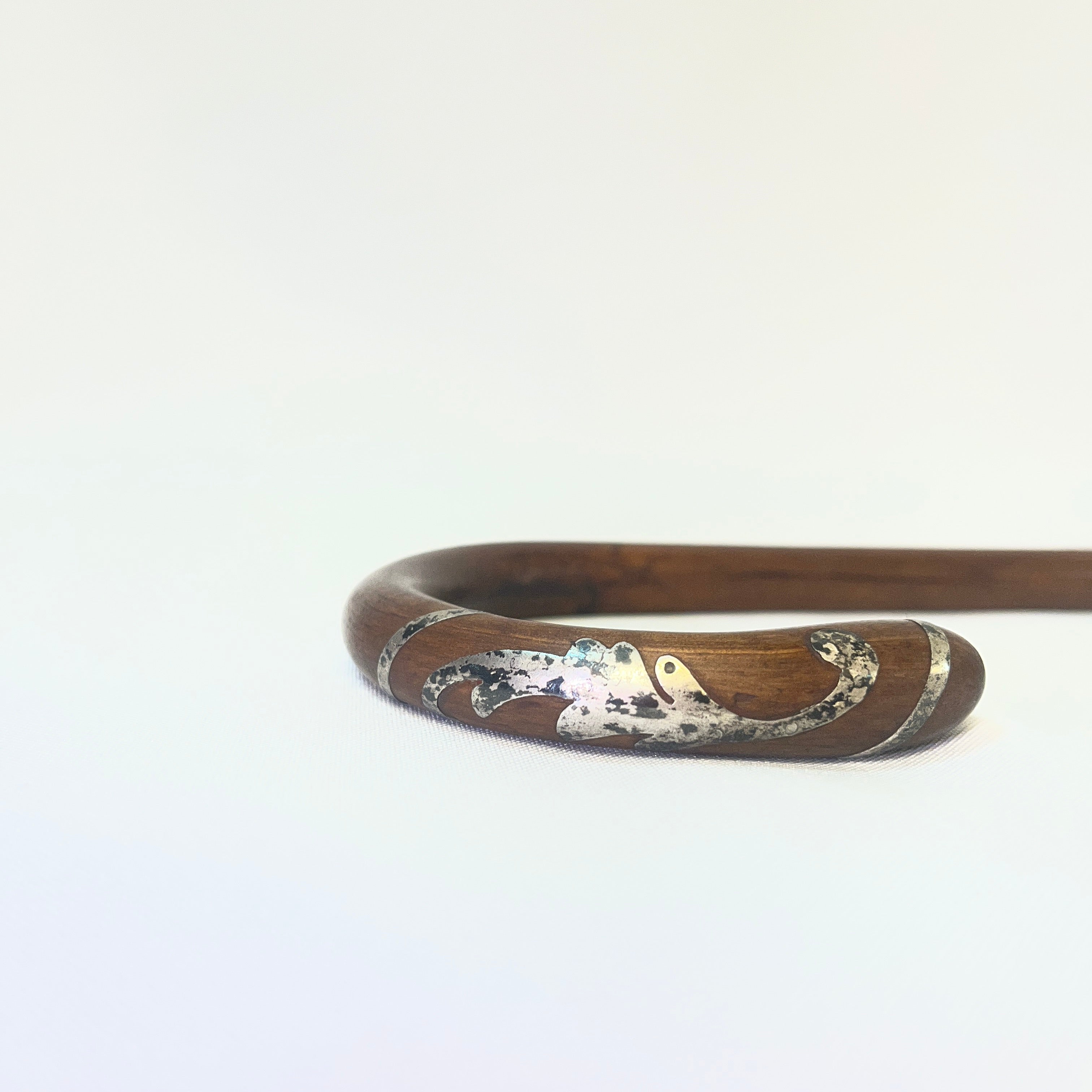 Bastón francés de madera empuñadura curva e incrustaciones metálicas