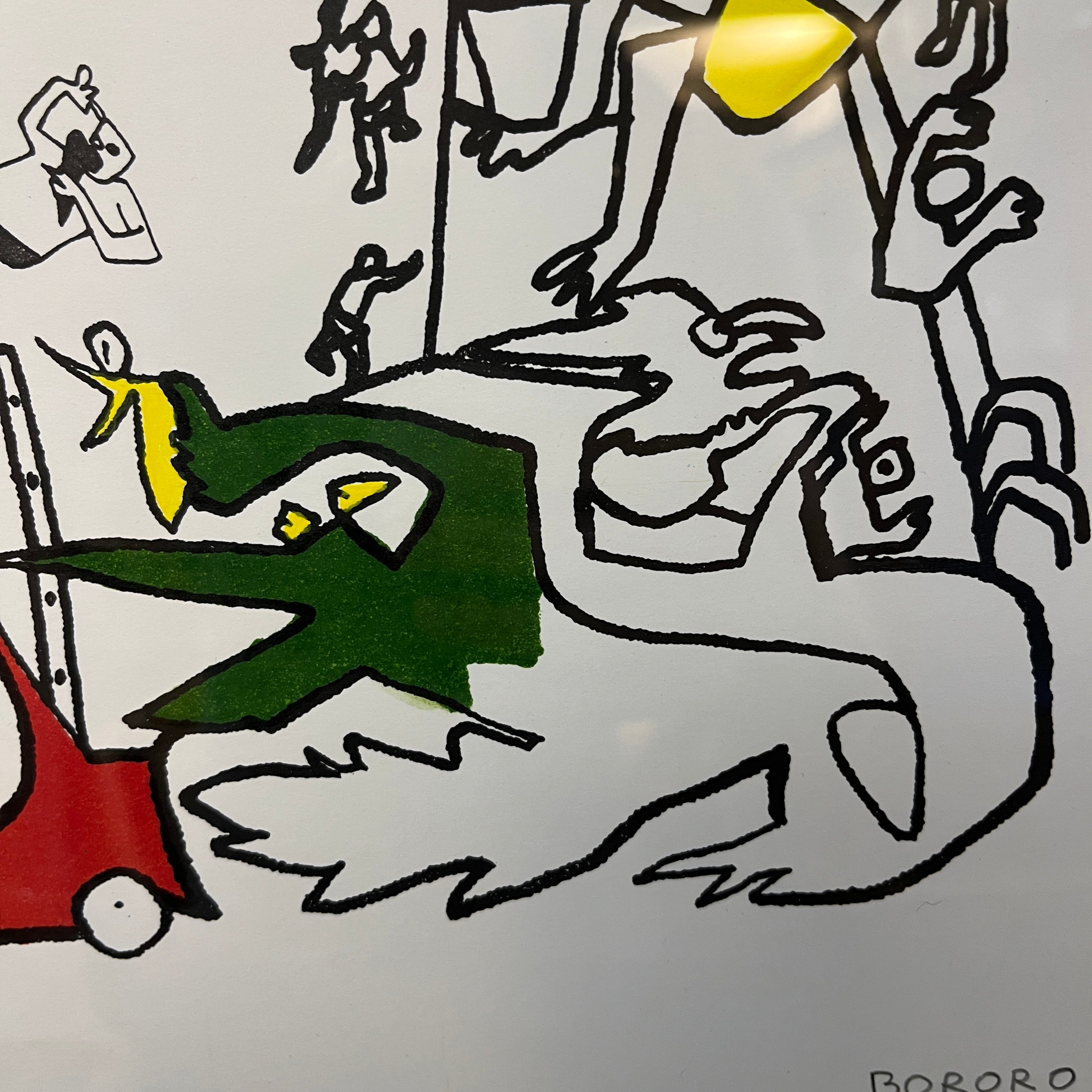 Aluminum lithograph by Chilean artist Bororo (born in 1953 in Santiago, Chile) is a prominent Chilean visual artist whose real name is Enrique Zamudio. He is known for his expressionist style and vibrant use of color. Bororo was part of the group of Chilean artists of the 1980s called "Los 80," who revitalized contemporary art in the country. His work is characterized by dynamic compositions, influenced by pop art, abstraction, and surrealism, creating complex and energetic images. His work explores themes of identity, nature, and popular culture.