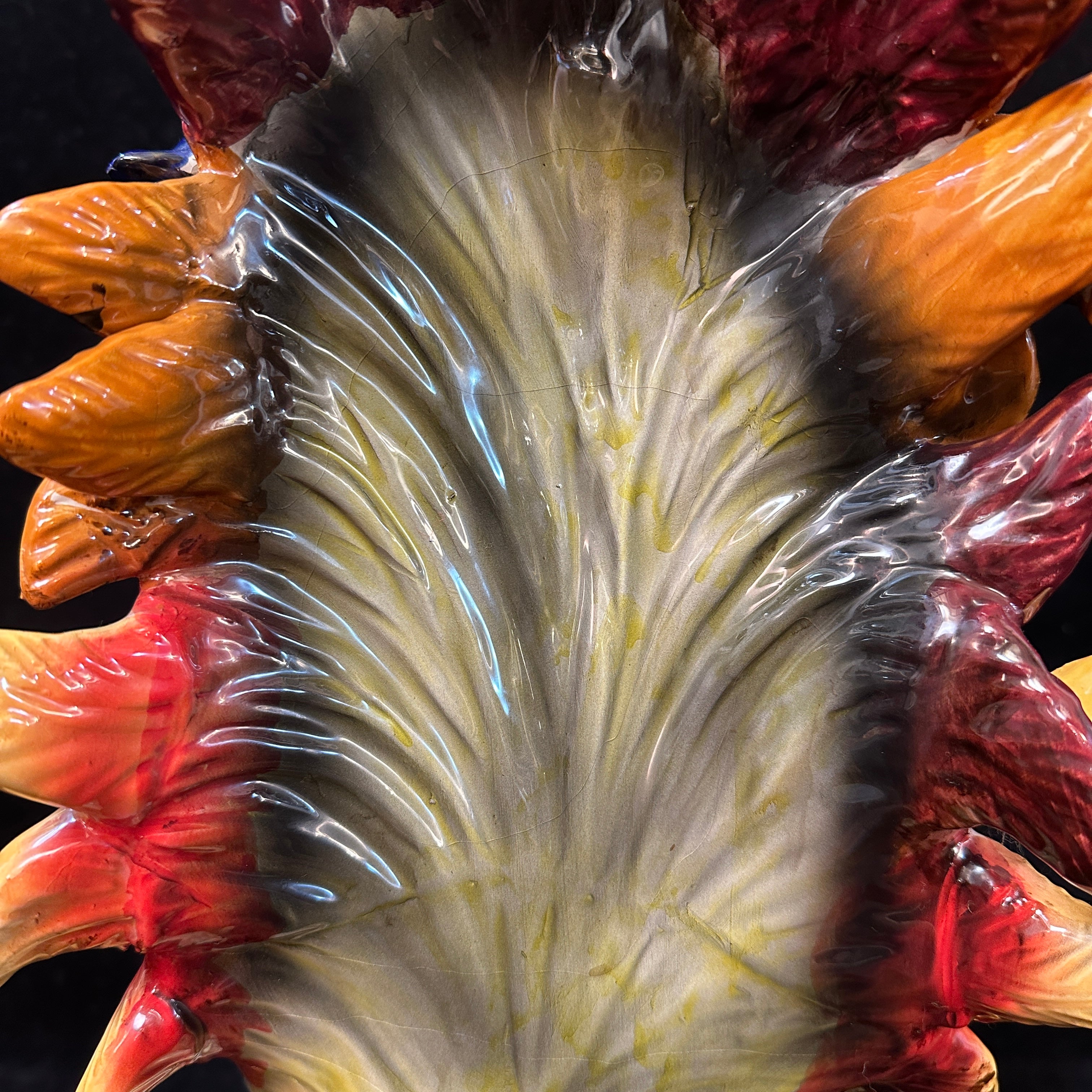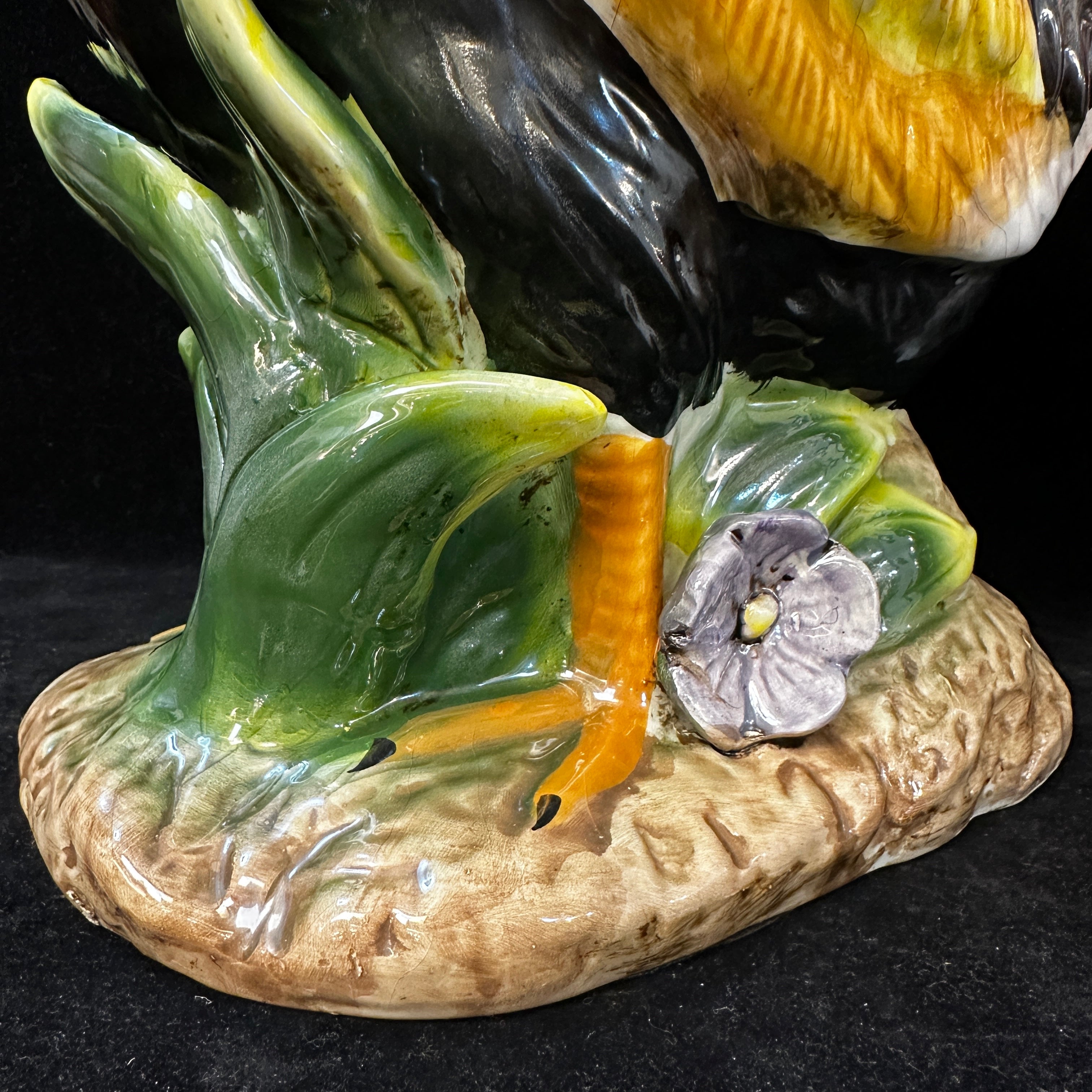 Figura porcelana mayólica francesa Gallo plumaje multicolor