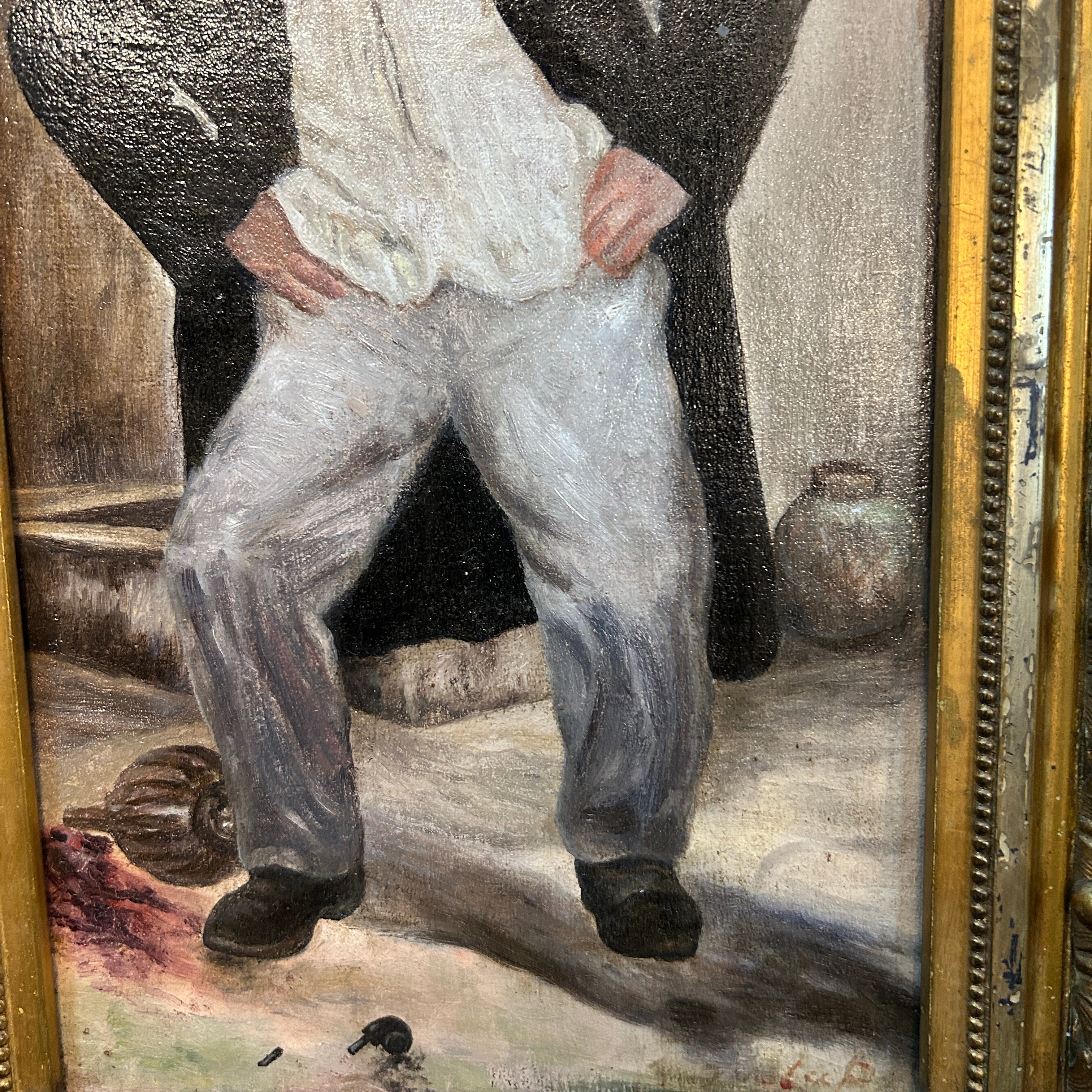 Firma Ilegible - Óleo sobre tela ‘Hombre fiestero’