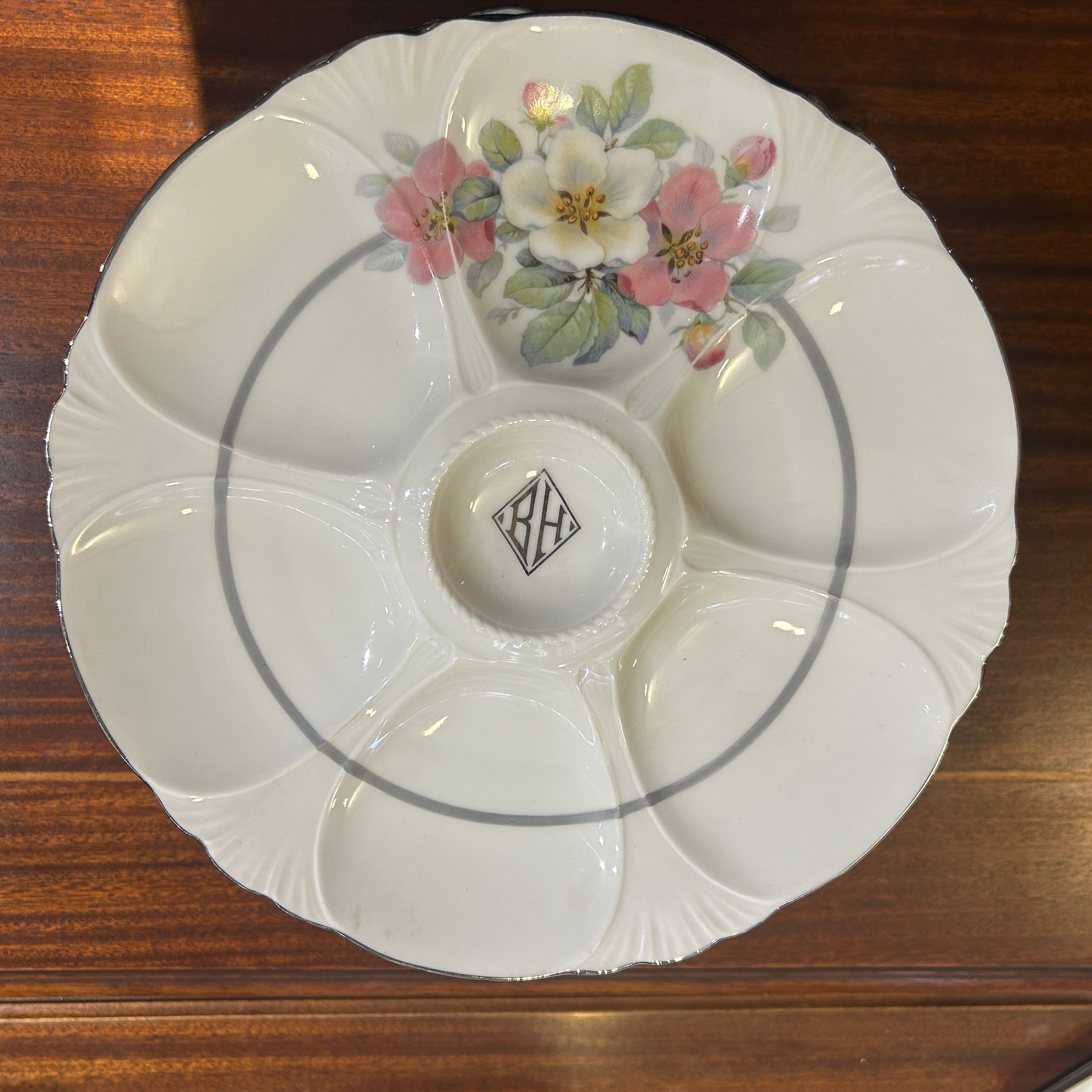 Gran juego de porcelana Limoges Raynaud para 15 personas art deco octagonal con terminaciones de plata 224 piezas