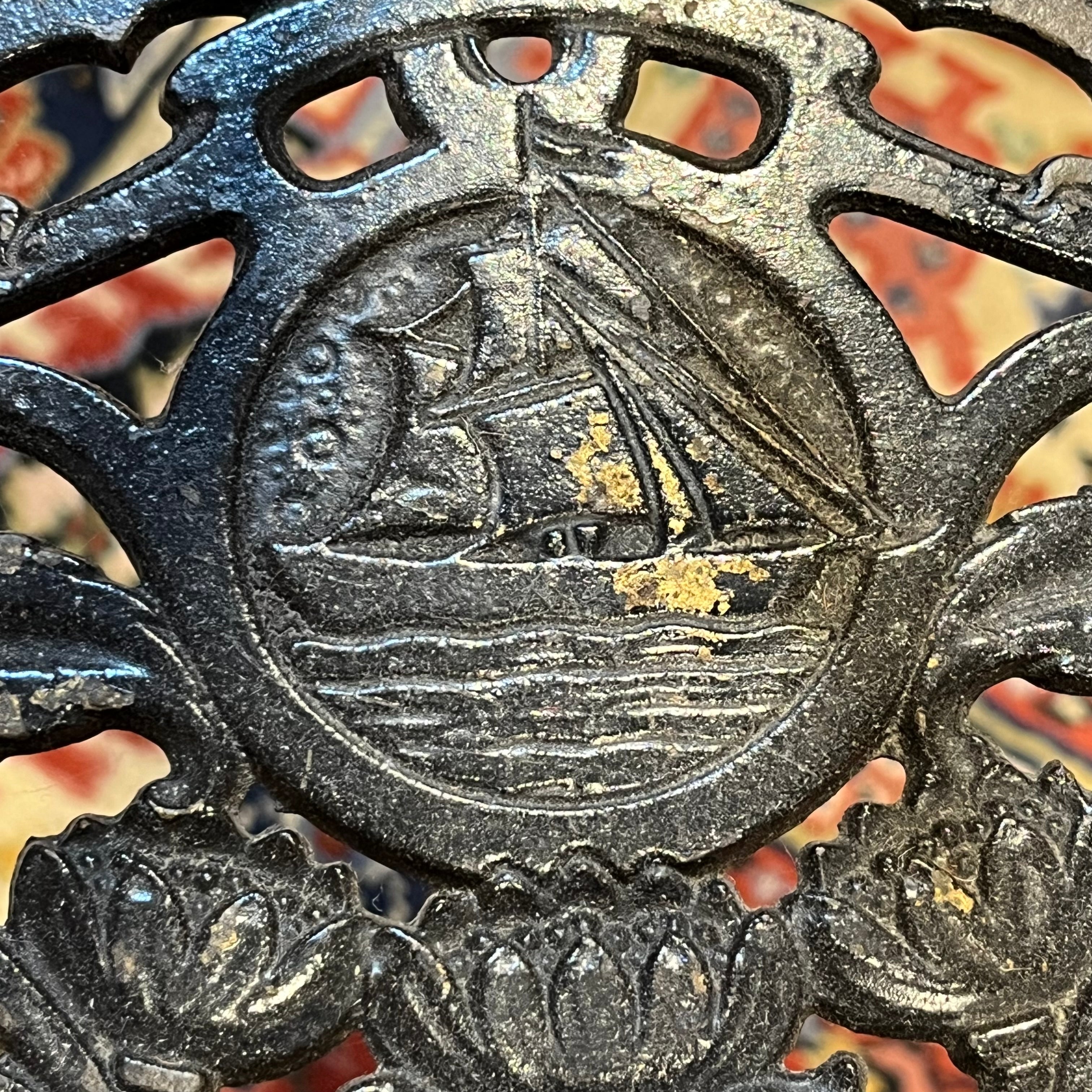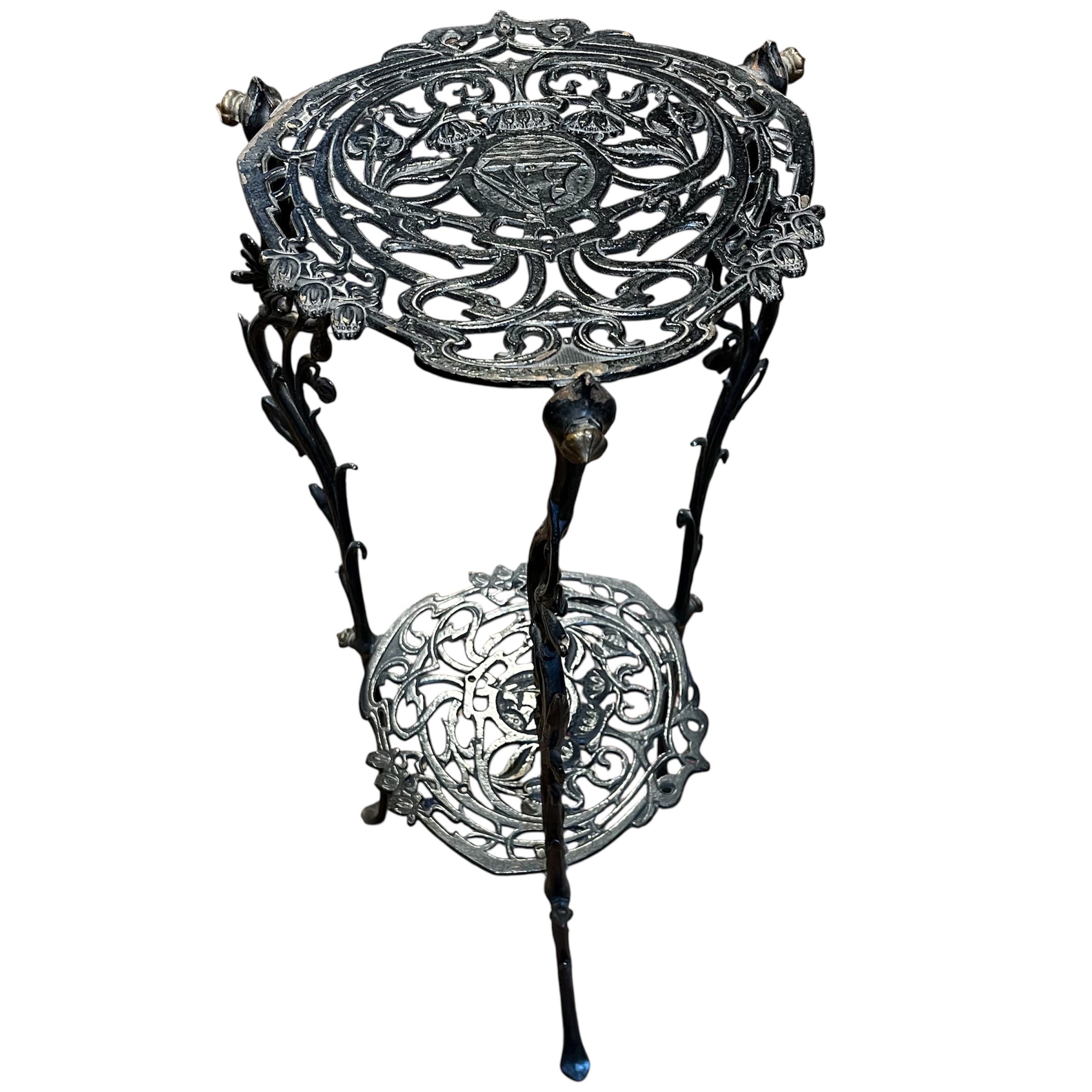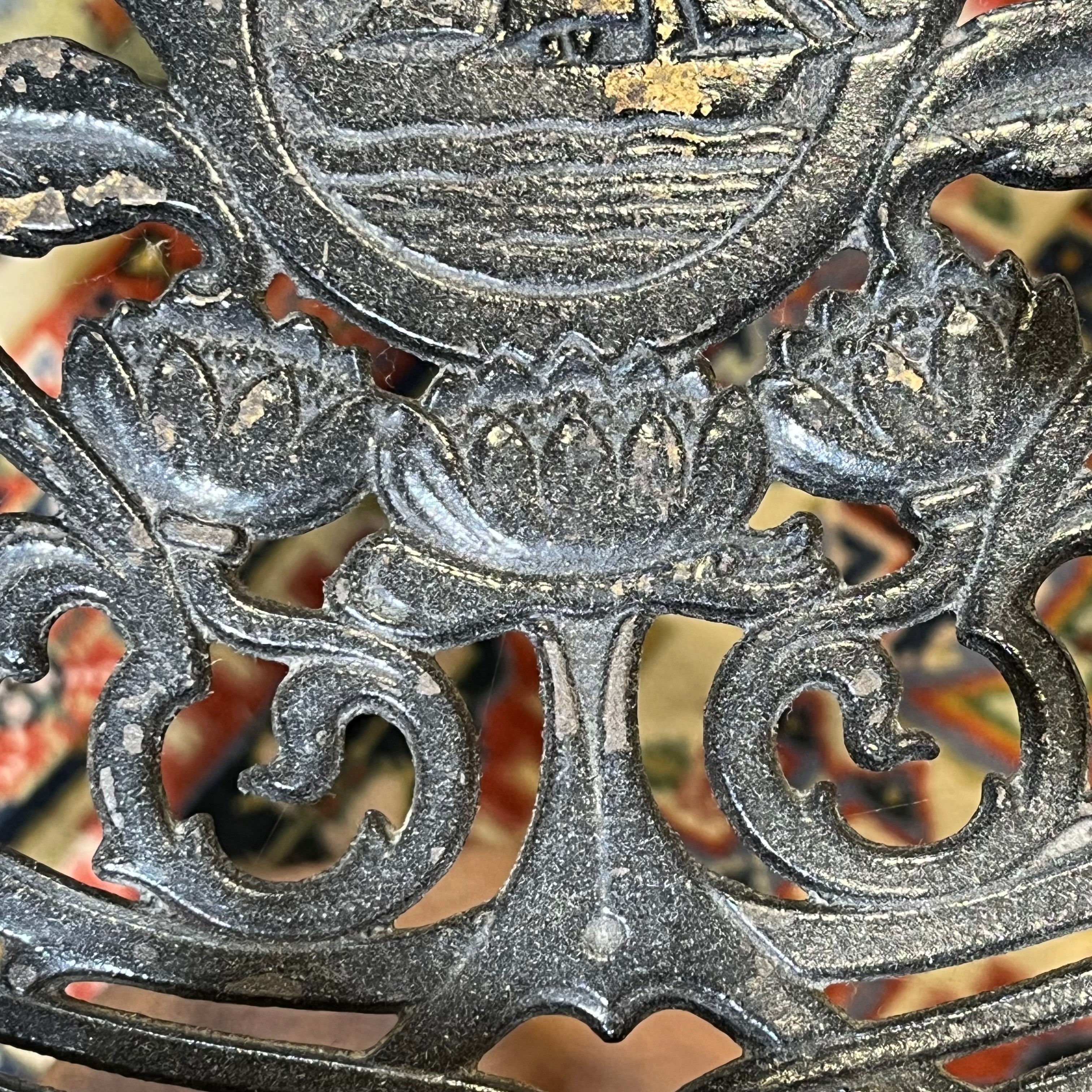 Bellísima jardinera francesa estilo Napoleón III de principios del s.xx en fierro patinado con diseños calados y motivos náuticos.