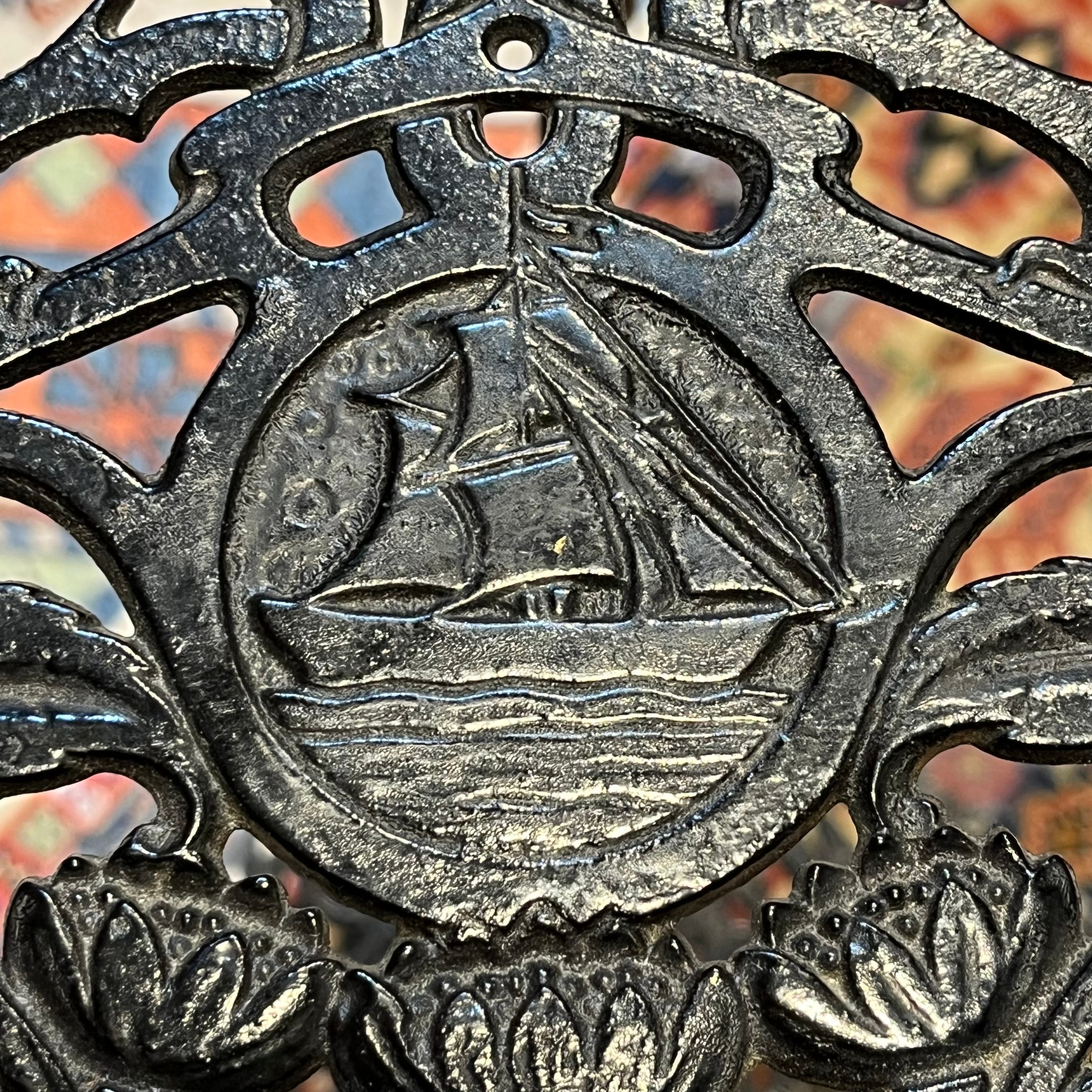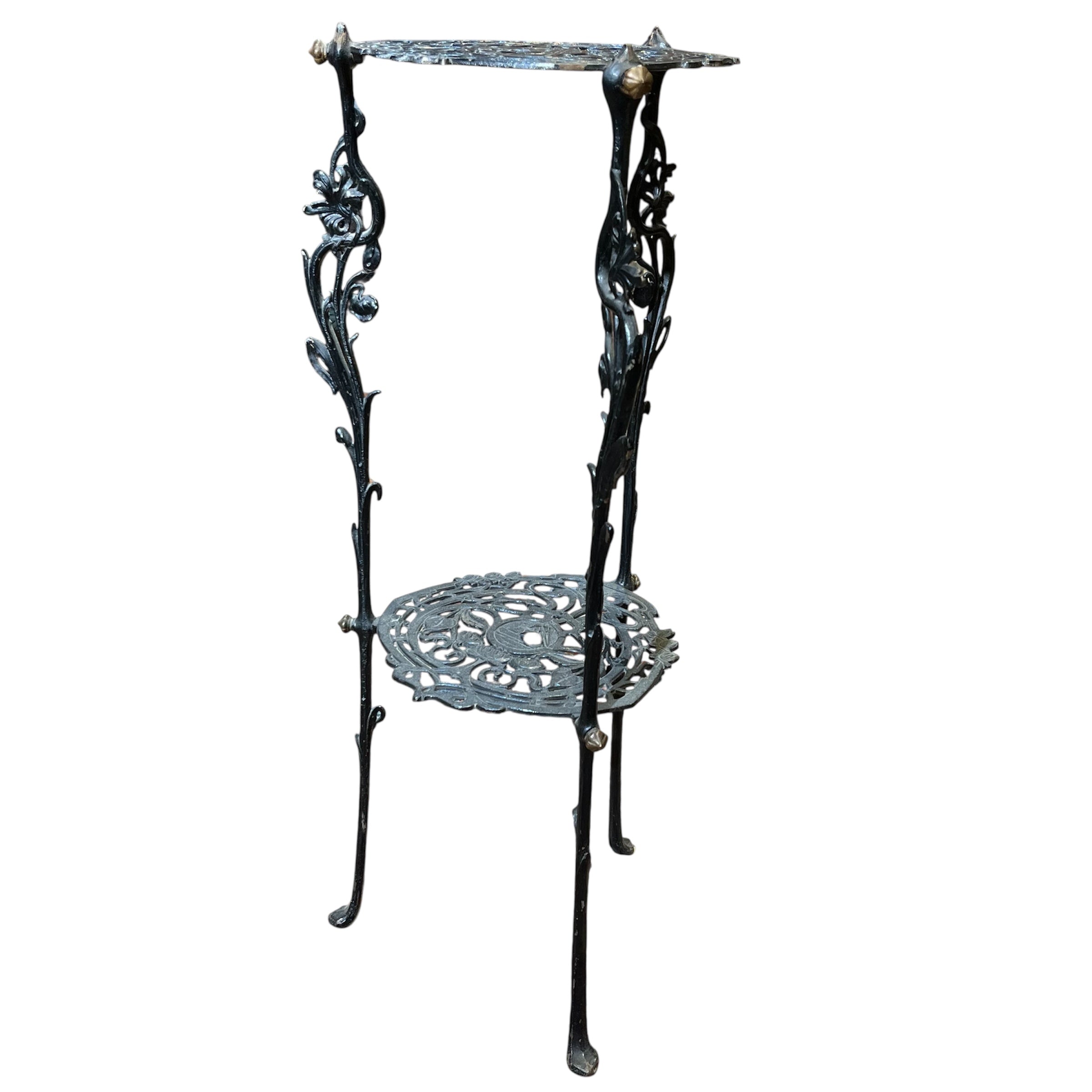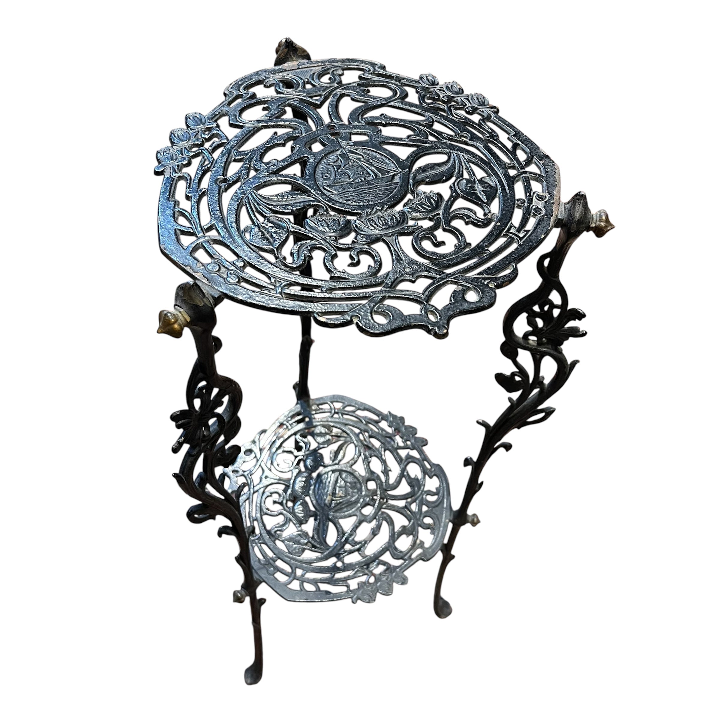 Bellísima jardinera francesa estilo Napoleón III de principios del s.xx en fierro patinado con diseños calados y motivos náuticos.