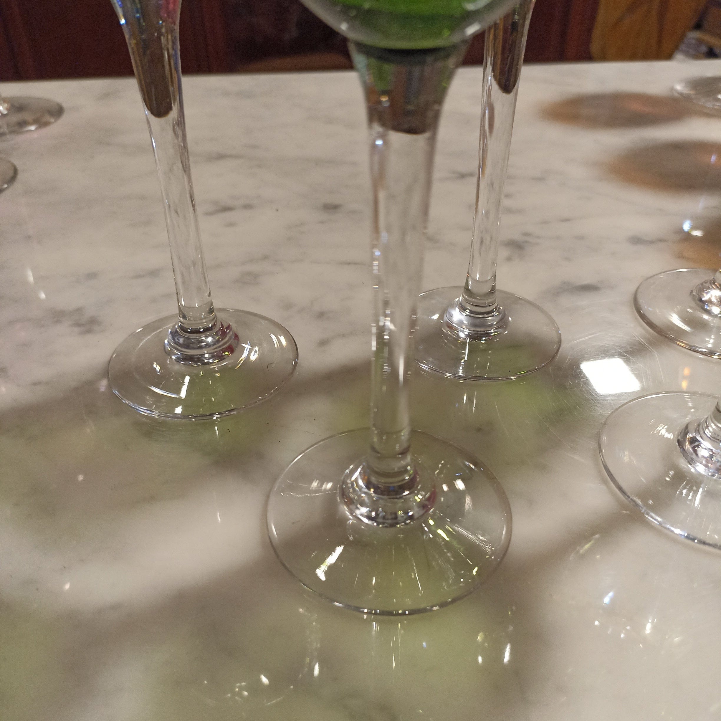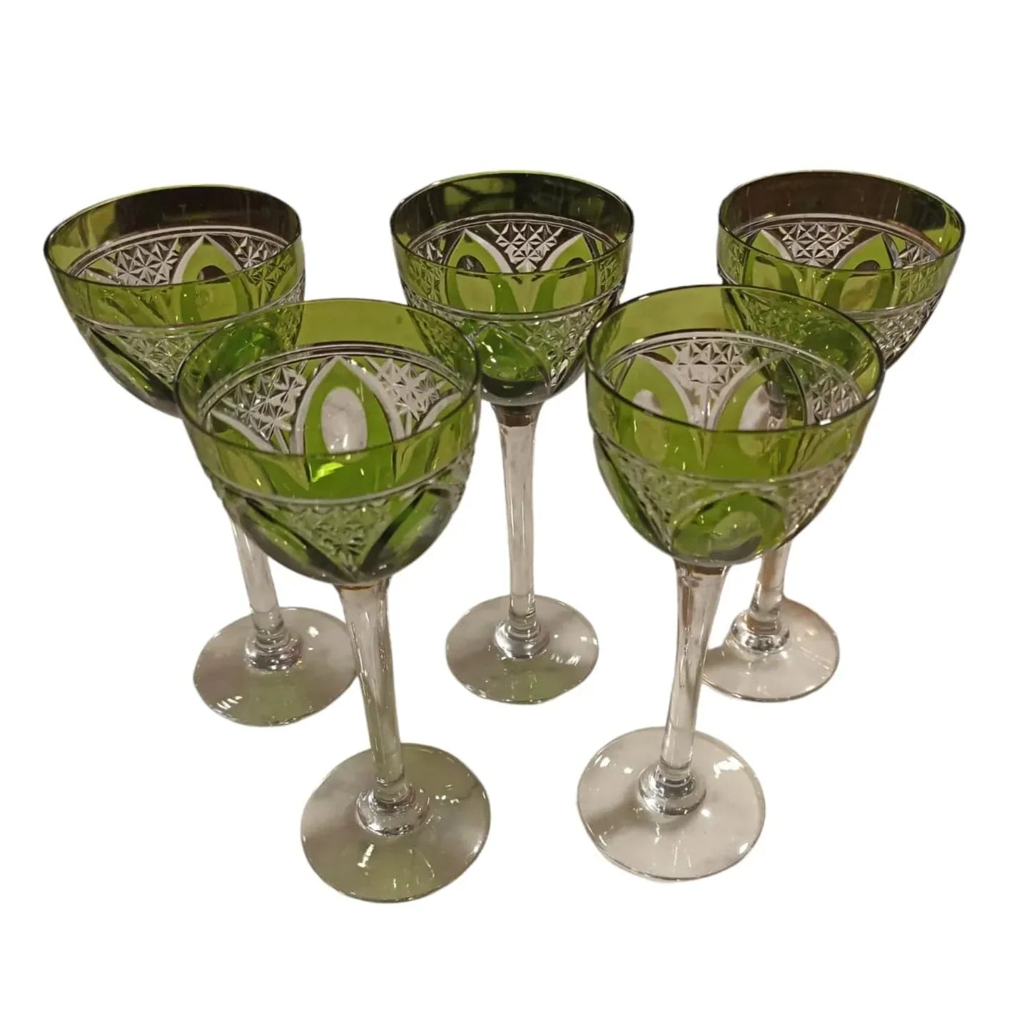 Set of Five Nancy French Cut Green Crystal White Wine Glasses