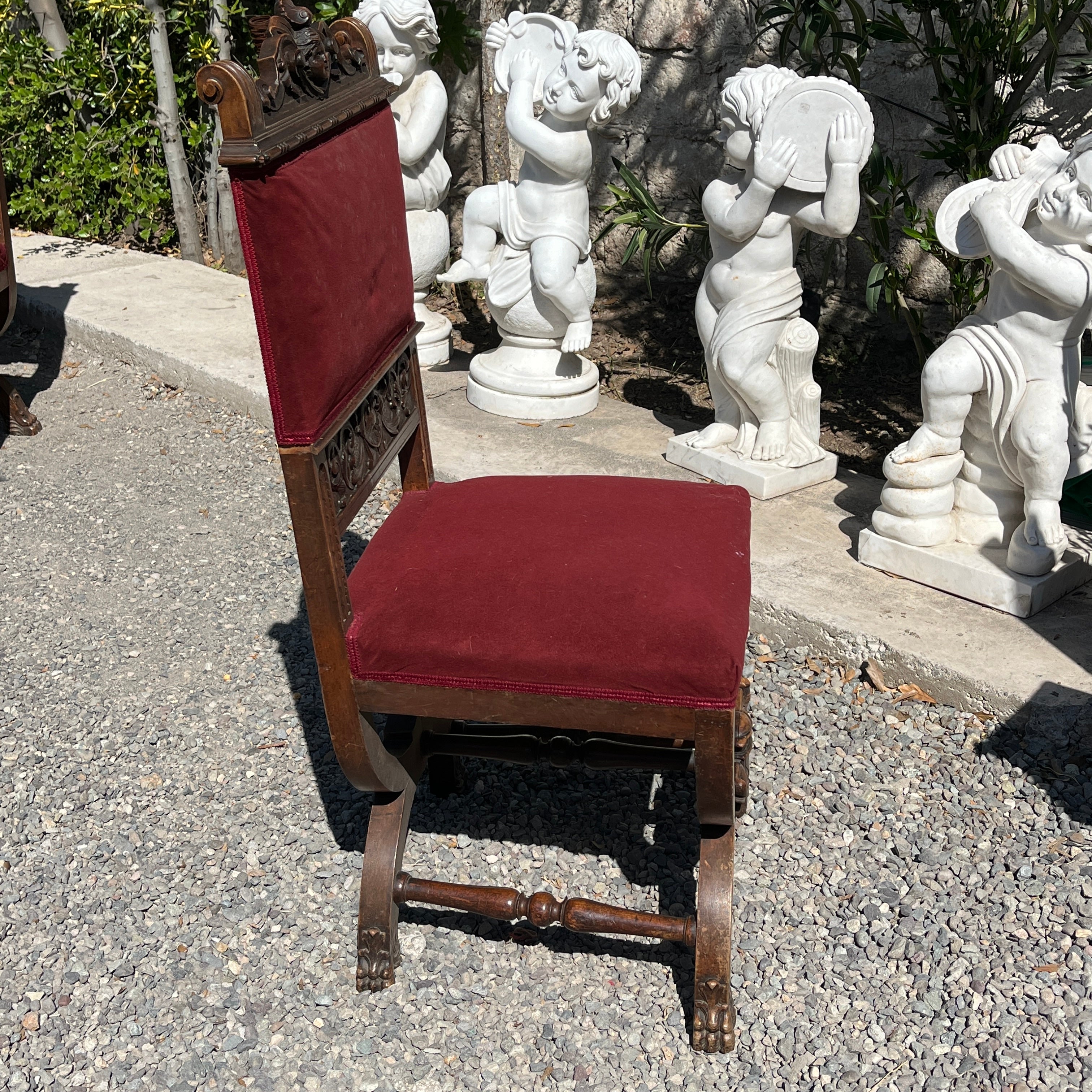 Juego de salón francés estilo Renacentista 9 piezas madera tallada y tapiz terciopelo rojo