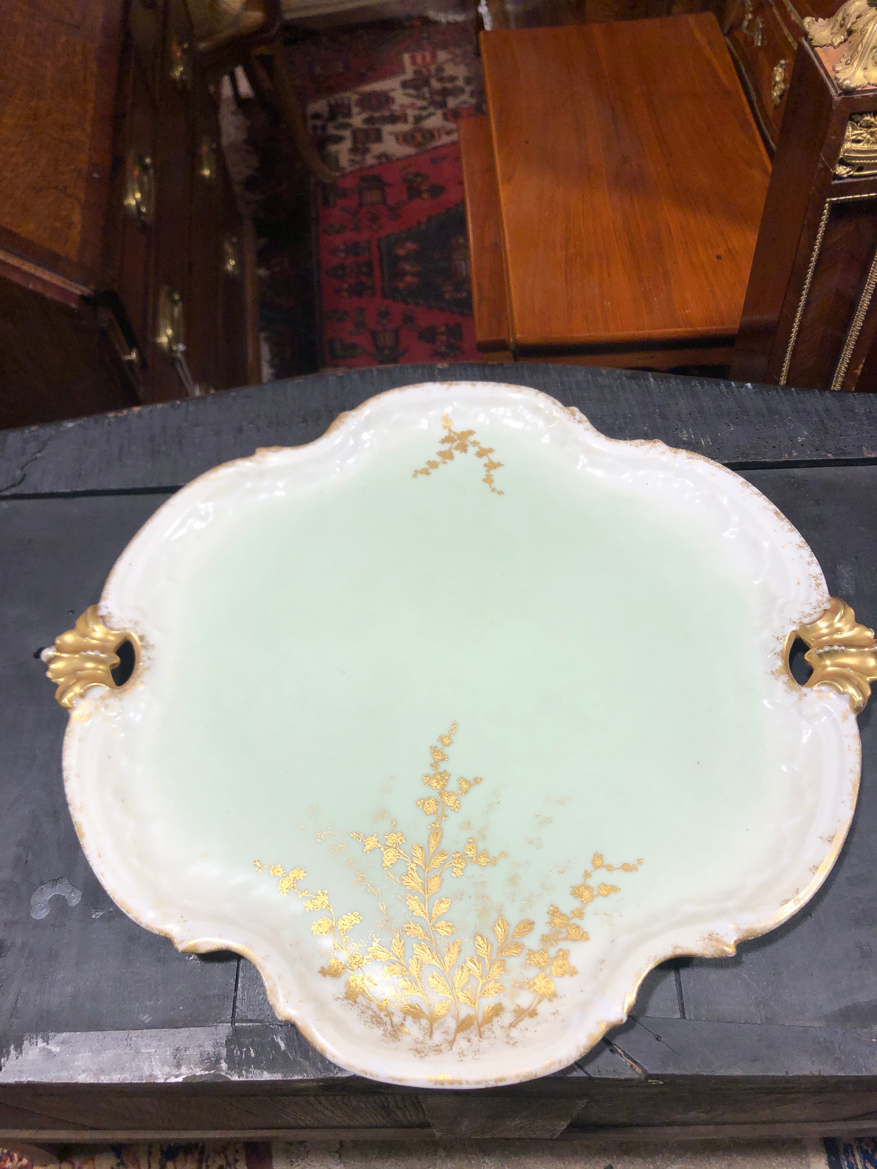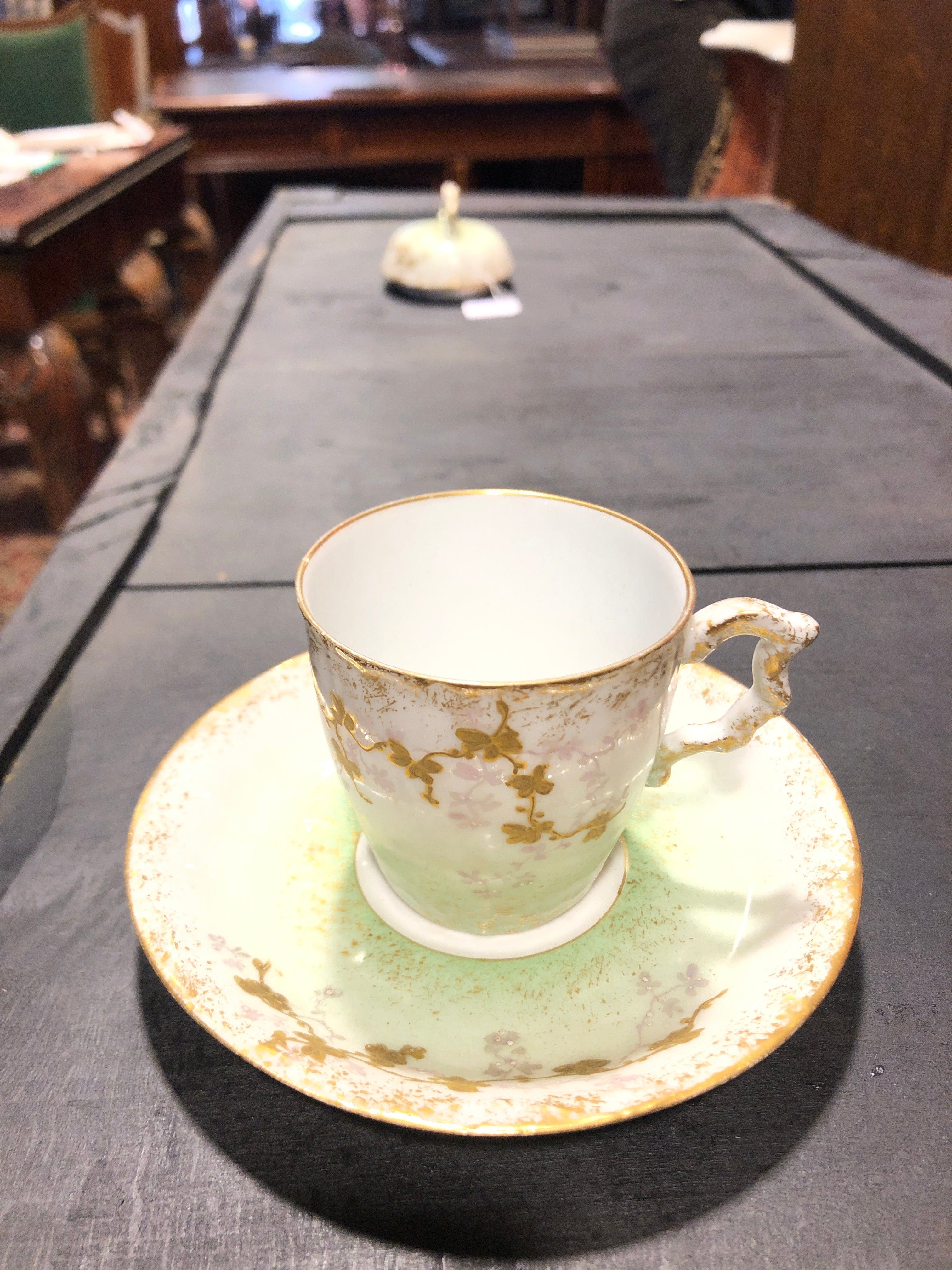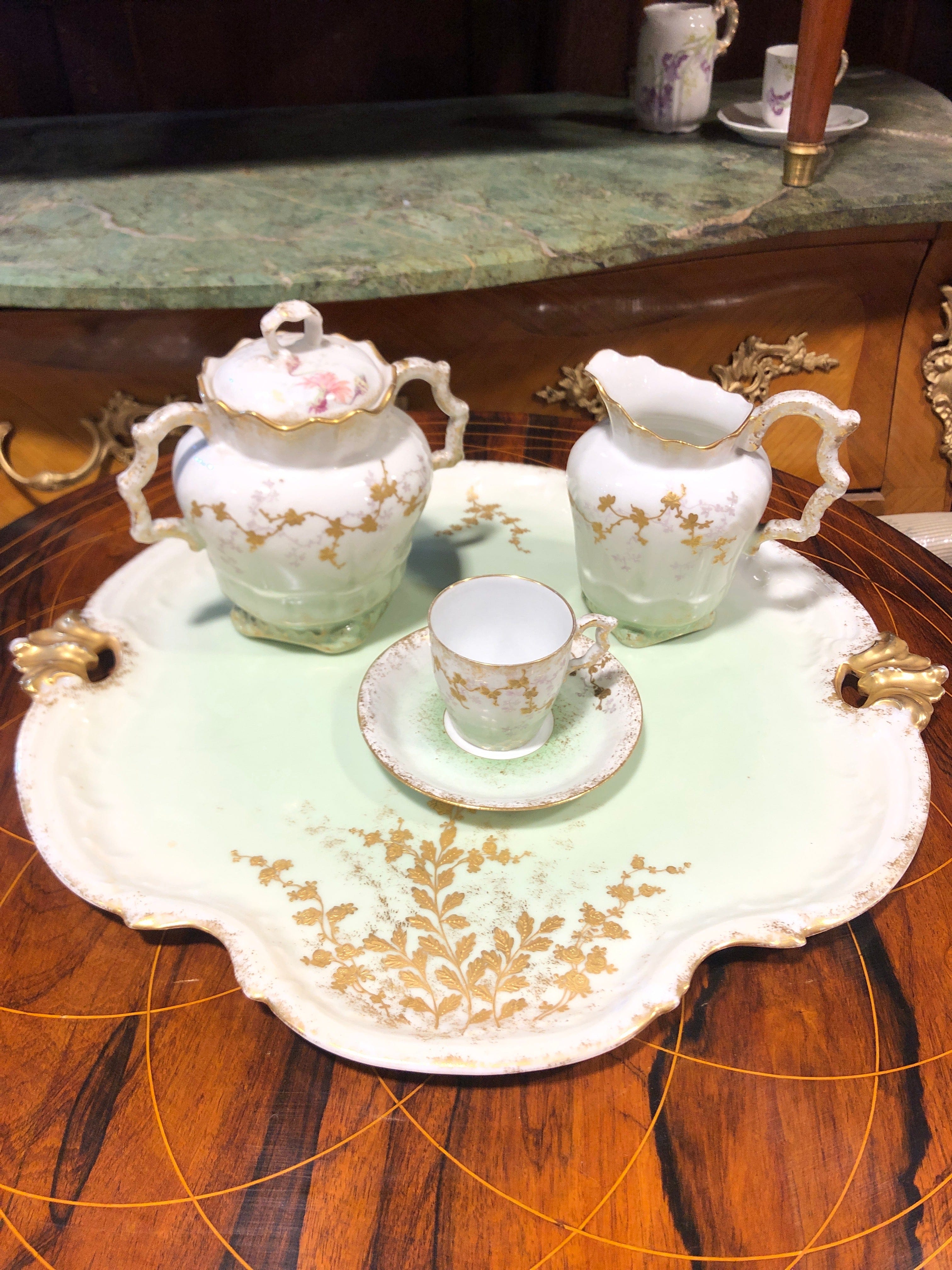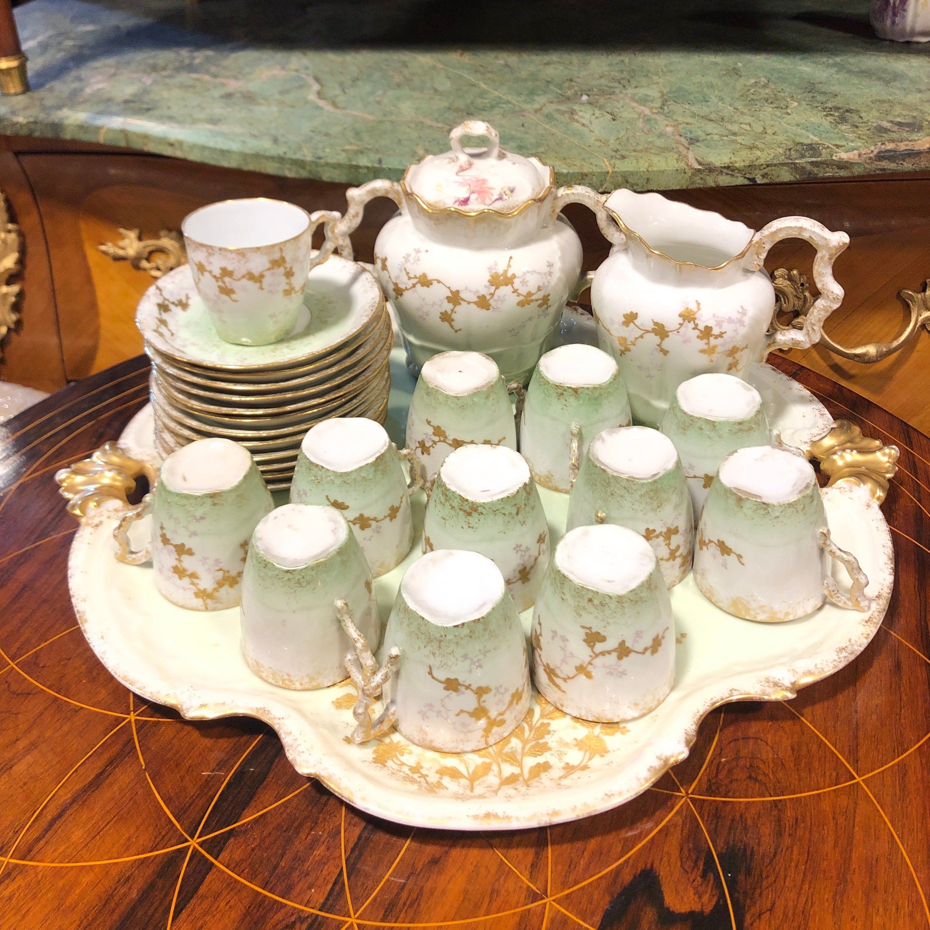 Coffee set for twelve people with a large tray, golden ormolu and mint flowers
