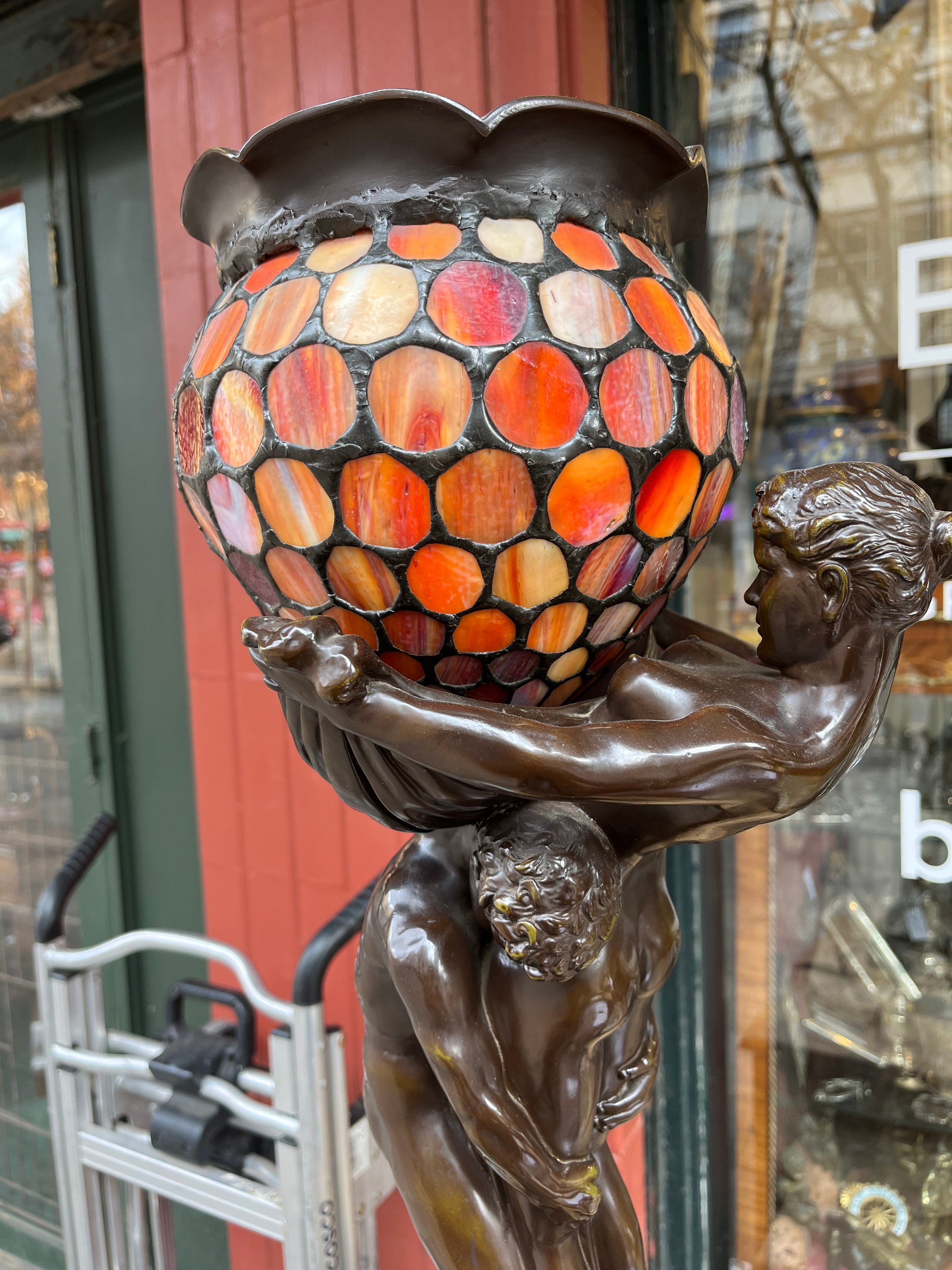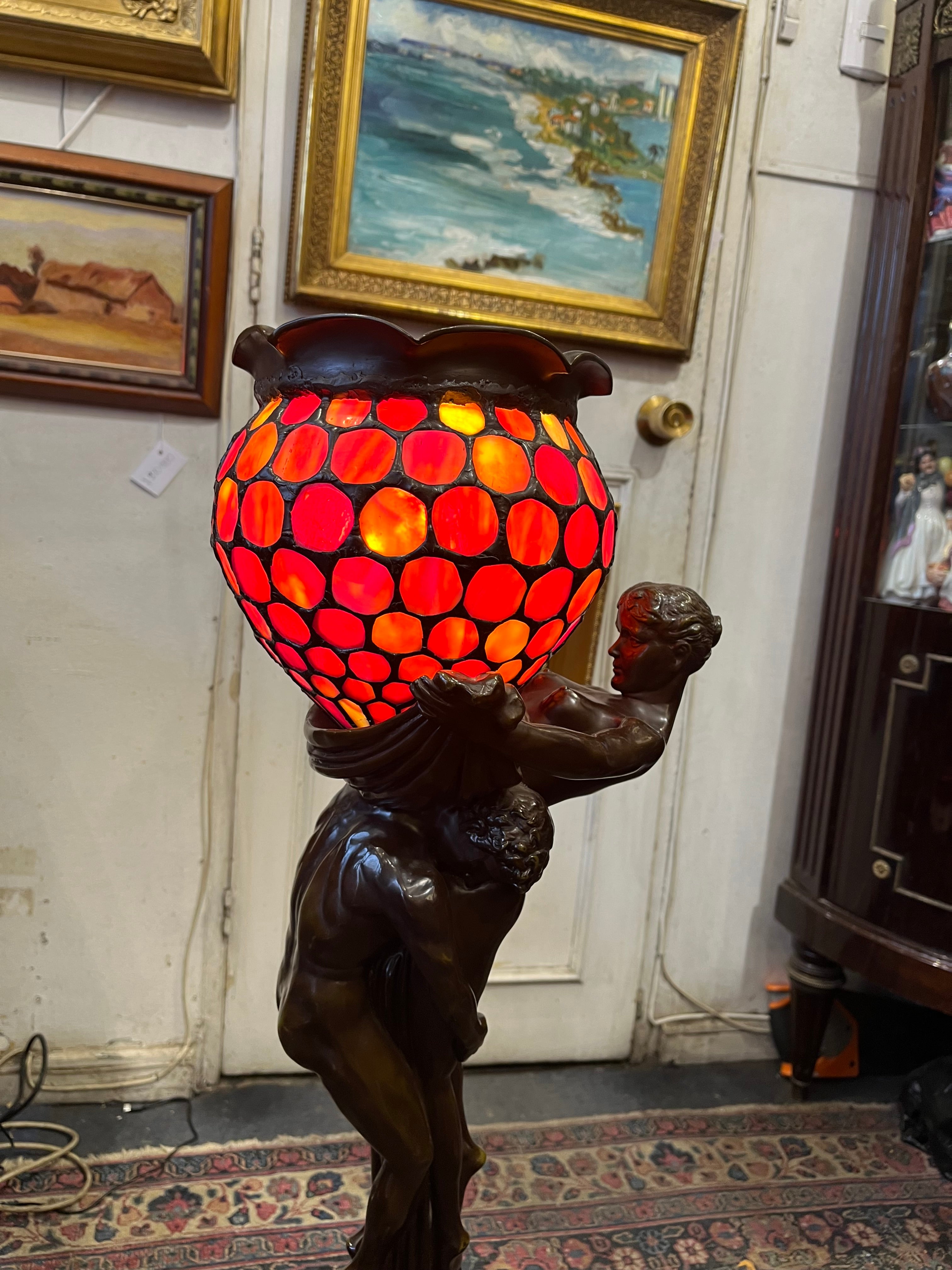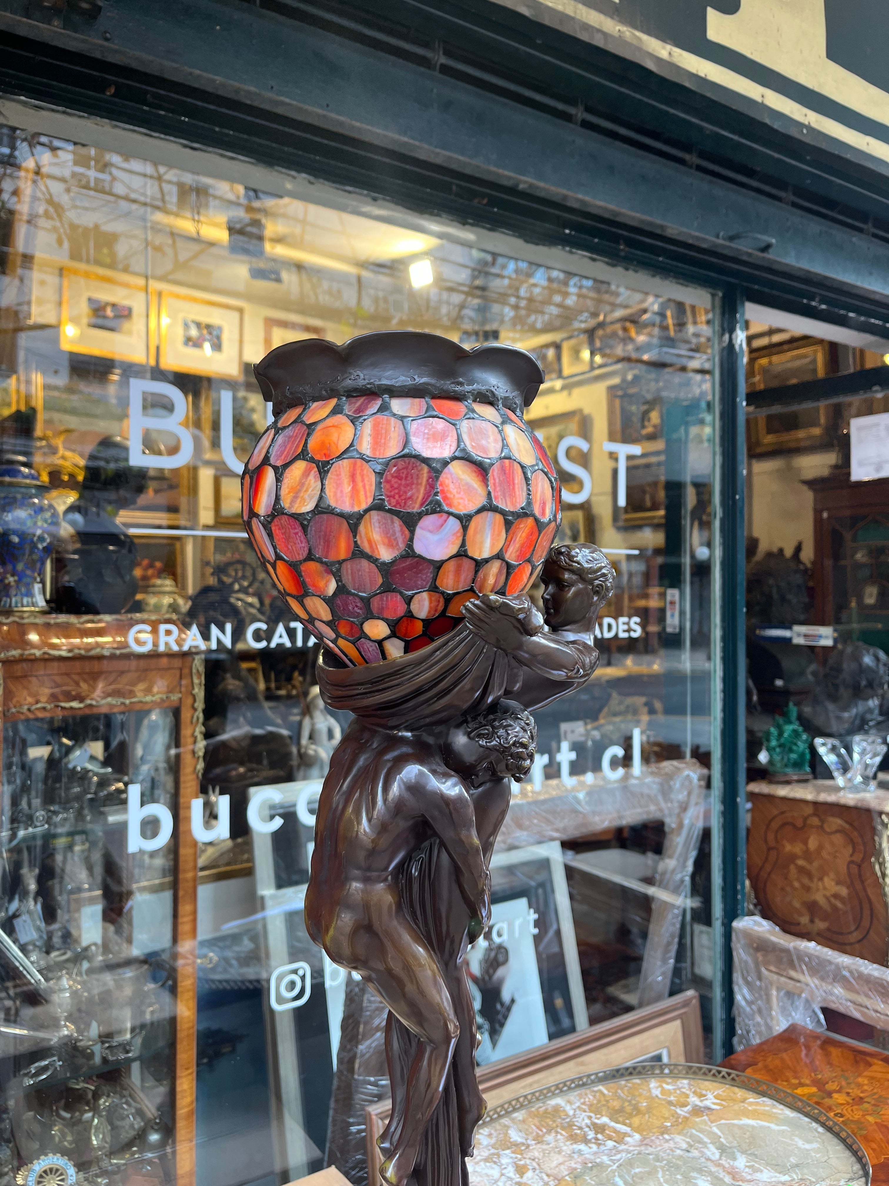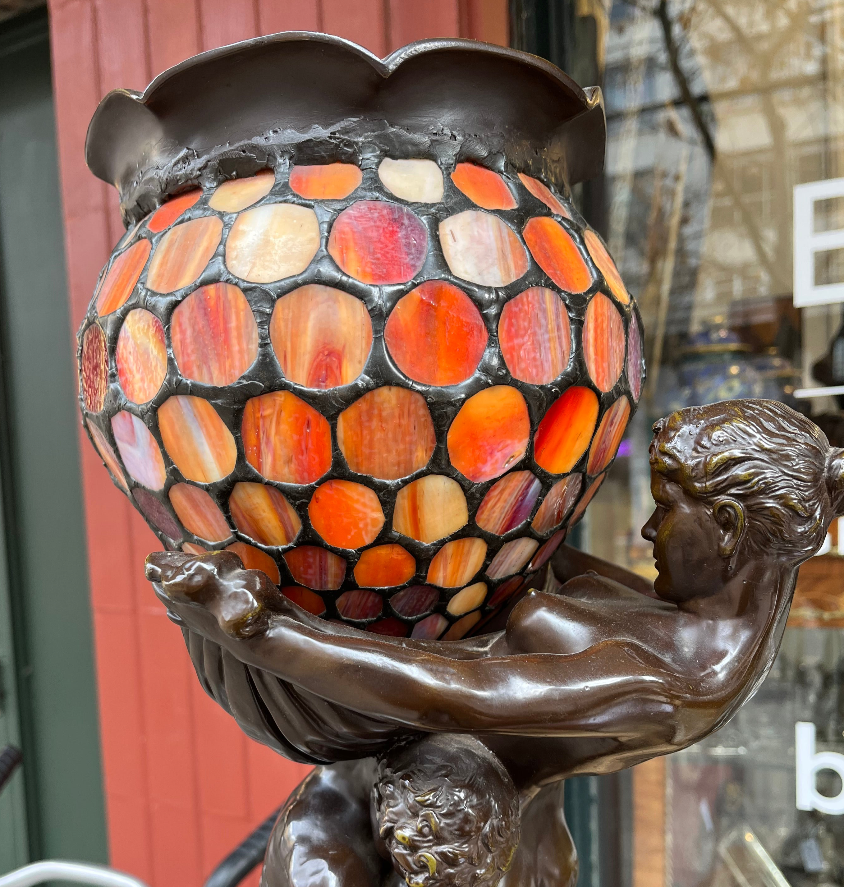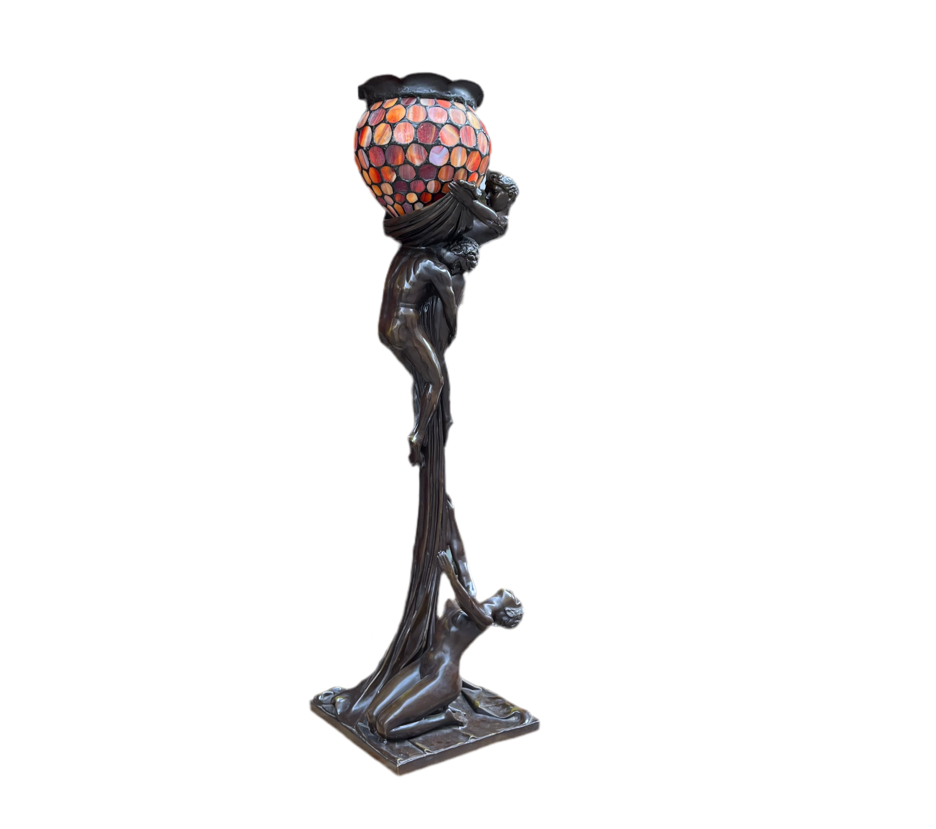 This is a replica of the lamp made by Austrian sculptor Gustave Gurschner (1873–1970) titled 'The Abandonment'. Gurschner was one of the iconic sculptors of the Art Nouveau period in Austria. In addition to his monumental work, the artist made a series of bronze lamps between 1900 and 1915, as well as decorative objects for the home.