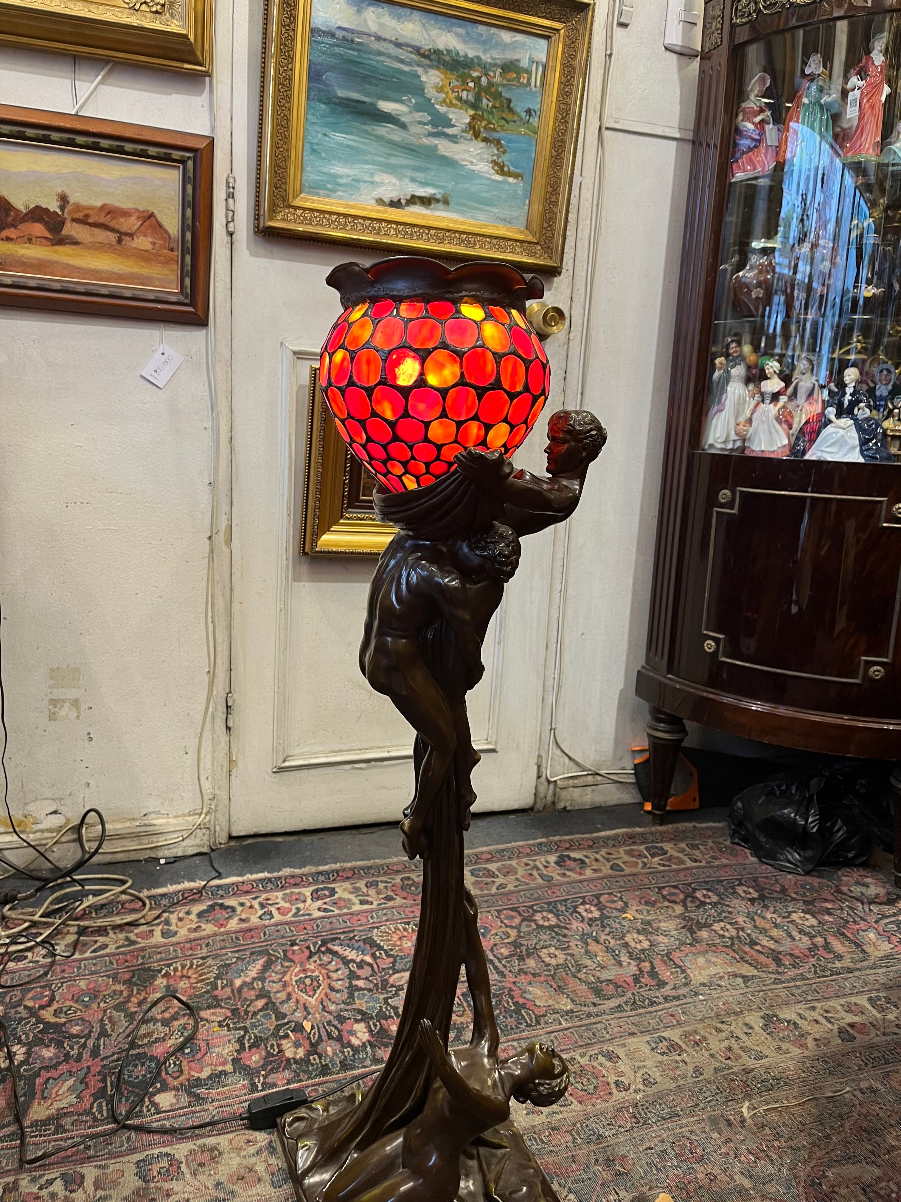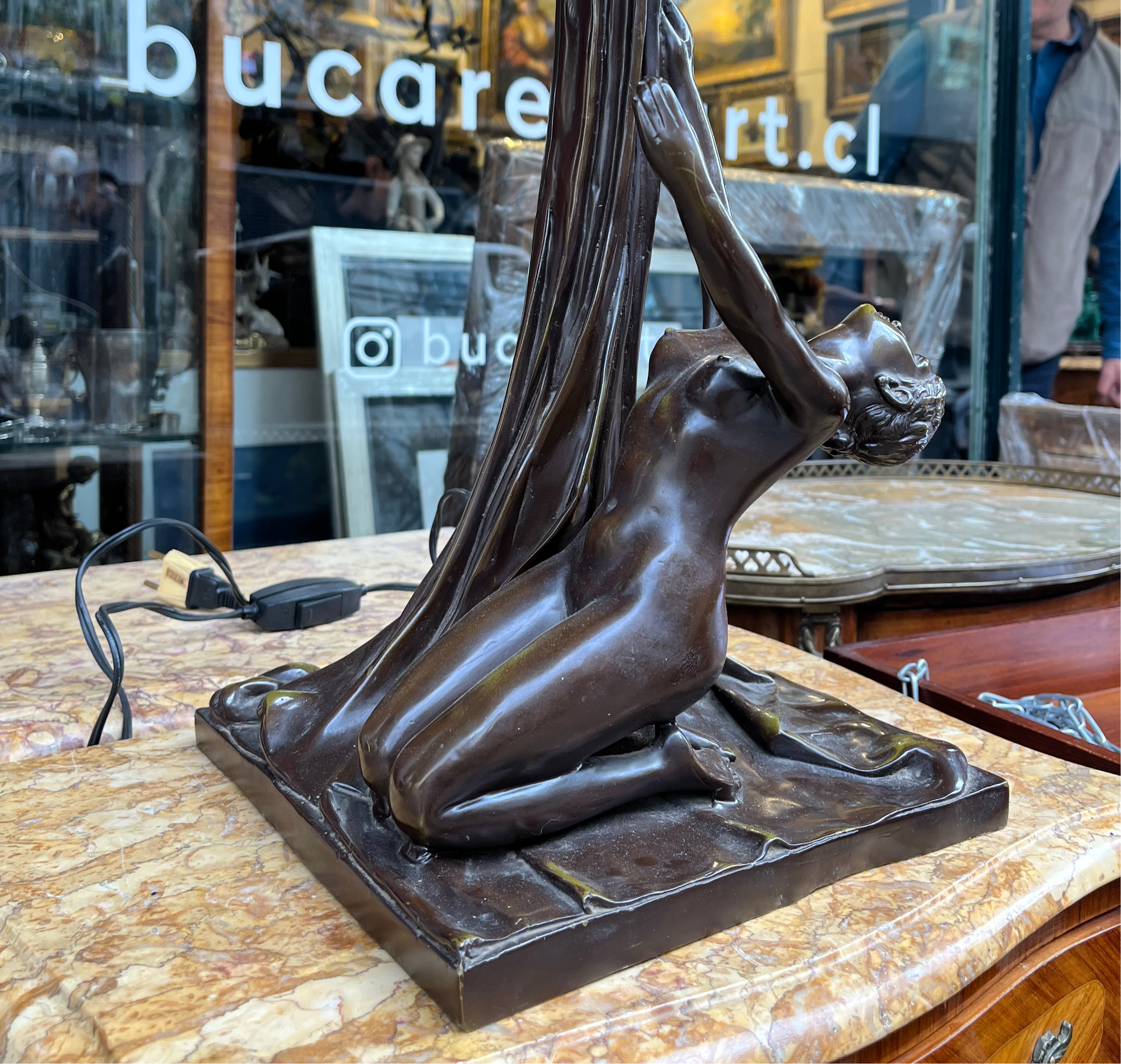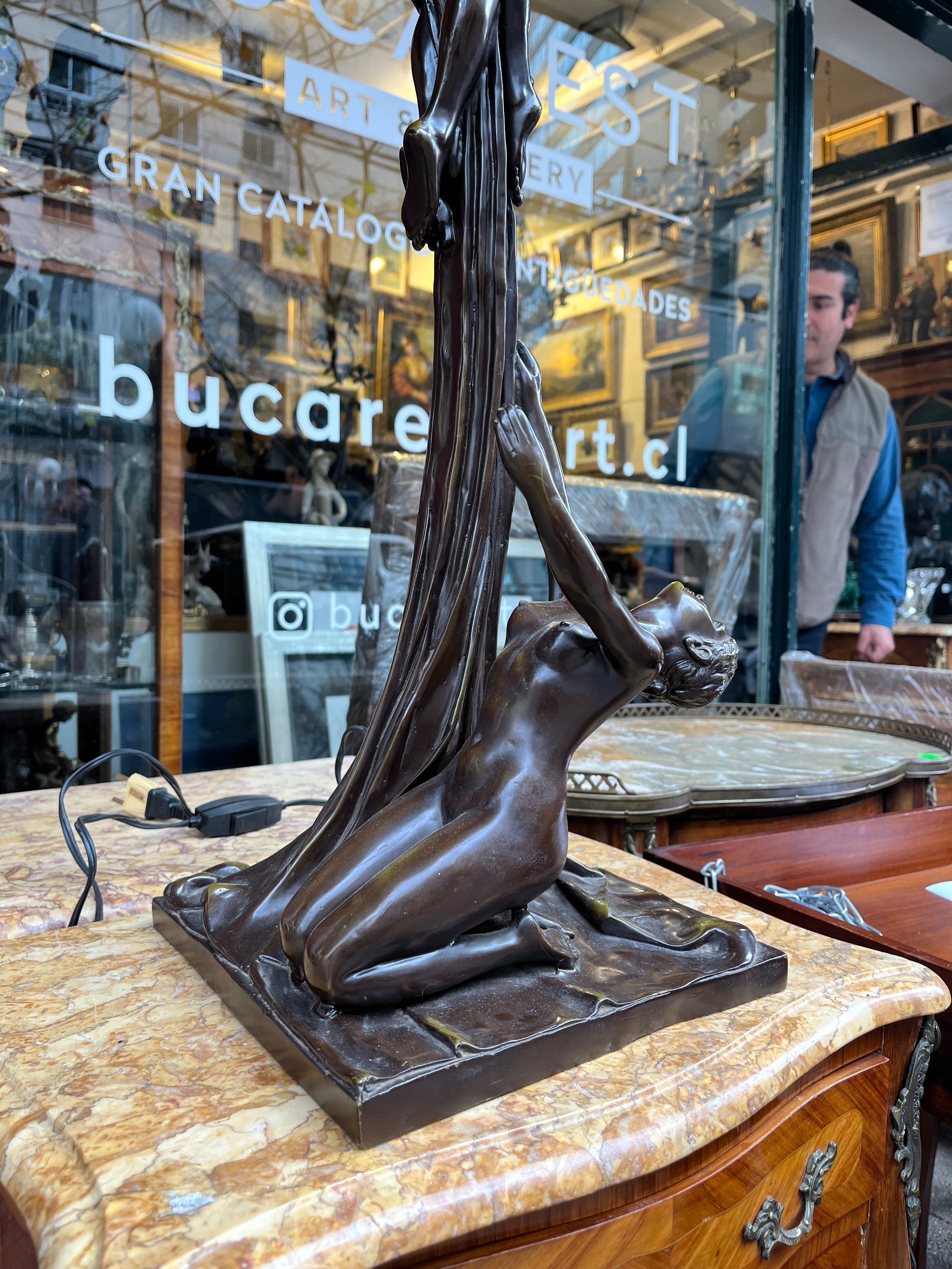 Art Nouveau bronze lamp, replica of Gustave Gurschner's 'The Abandonment'