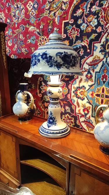 Lámpara rusa estilo Gzhel porcelana blanca azul