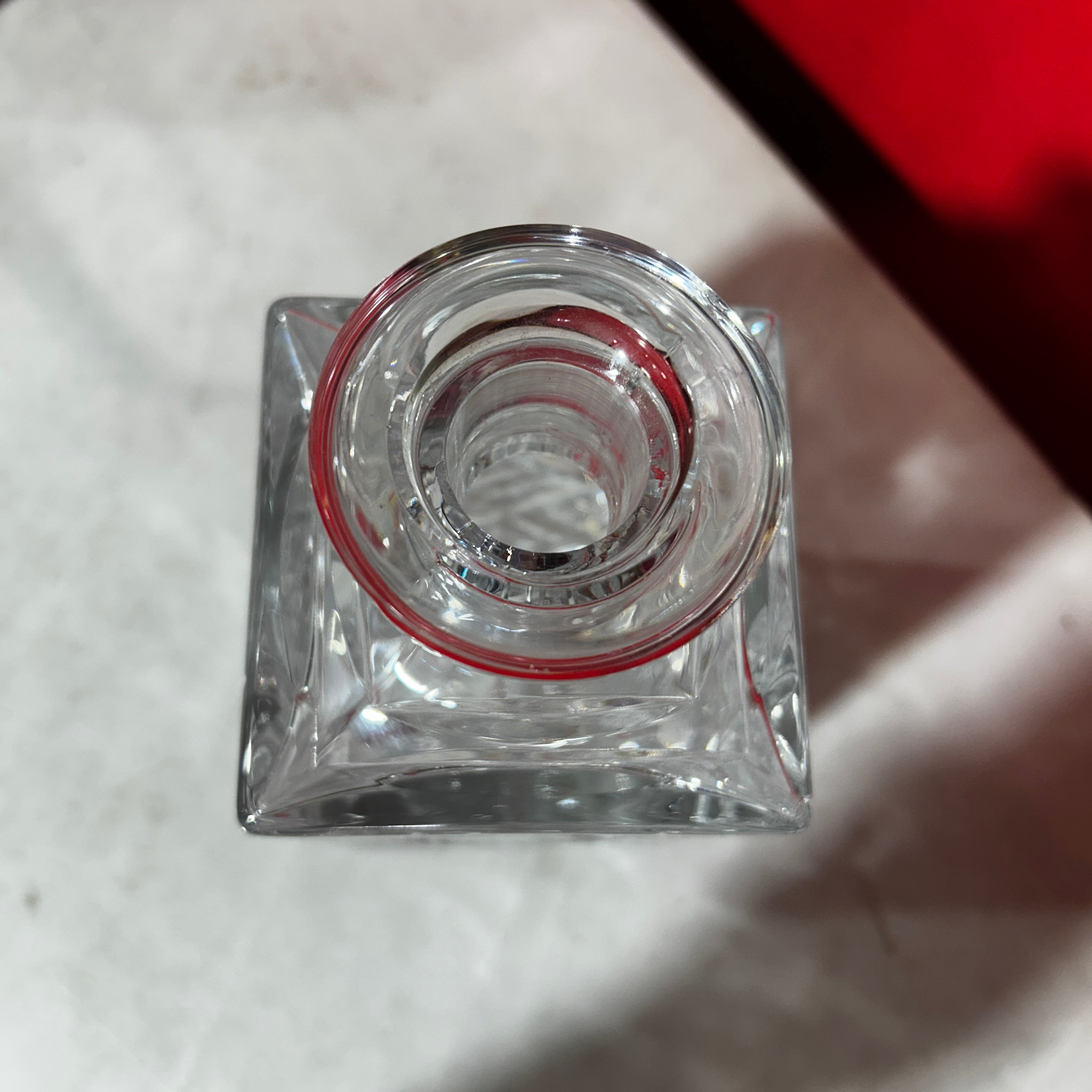 Preciosa licorera francesa de cristal rectangular, tapa cuadrada y bellisimos diseños.