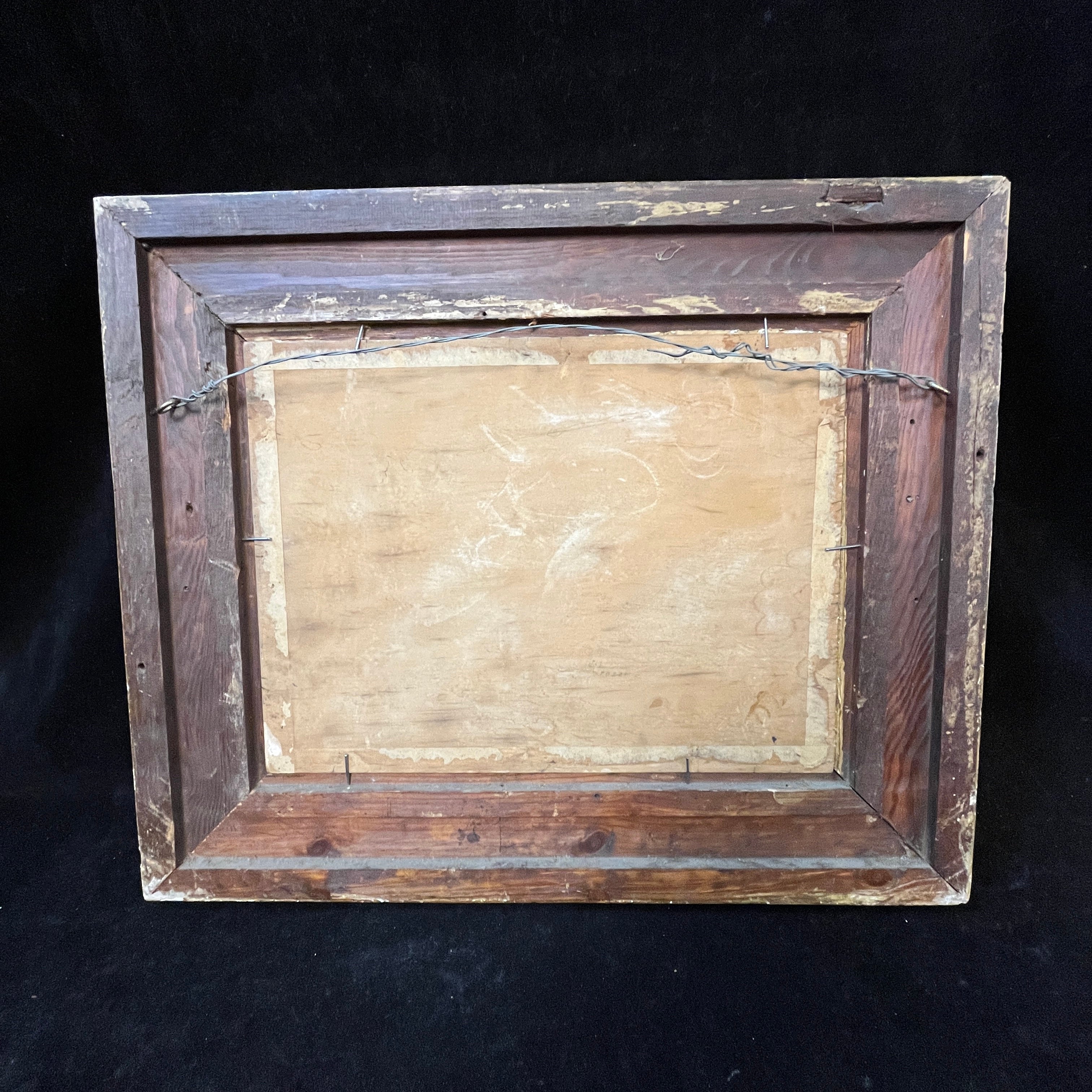 Dimensiones: Marco alto:49cm, ancho 59cm, profundidad: 7cm. Obra: alto:29cm, ancho: 39cm.