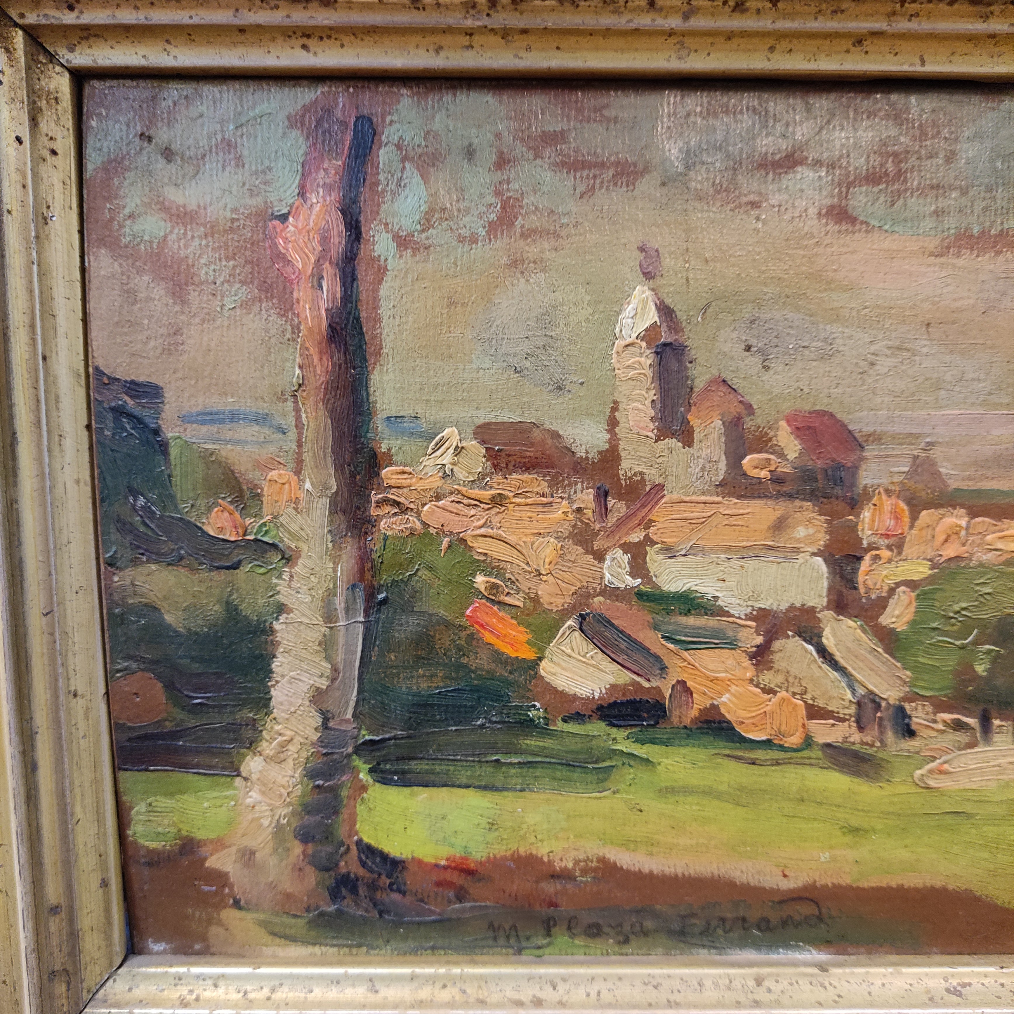 Marcial Plaza Ferrand - Oil on cardboard 'Village Landscape'