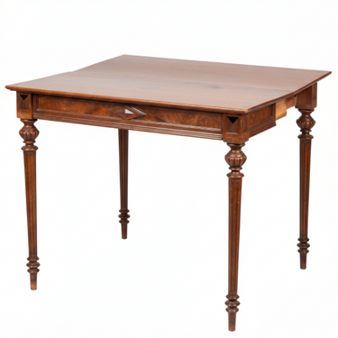 Mesa consola a altura de apoyo en chapa de caoba; sobre abatible; patas fuseladas acanaladas; fin del XIX.