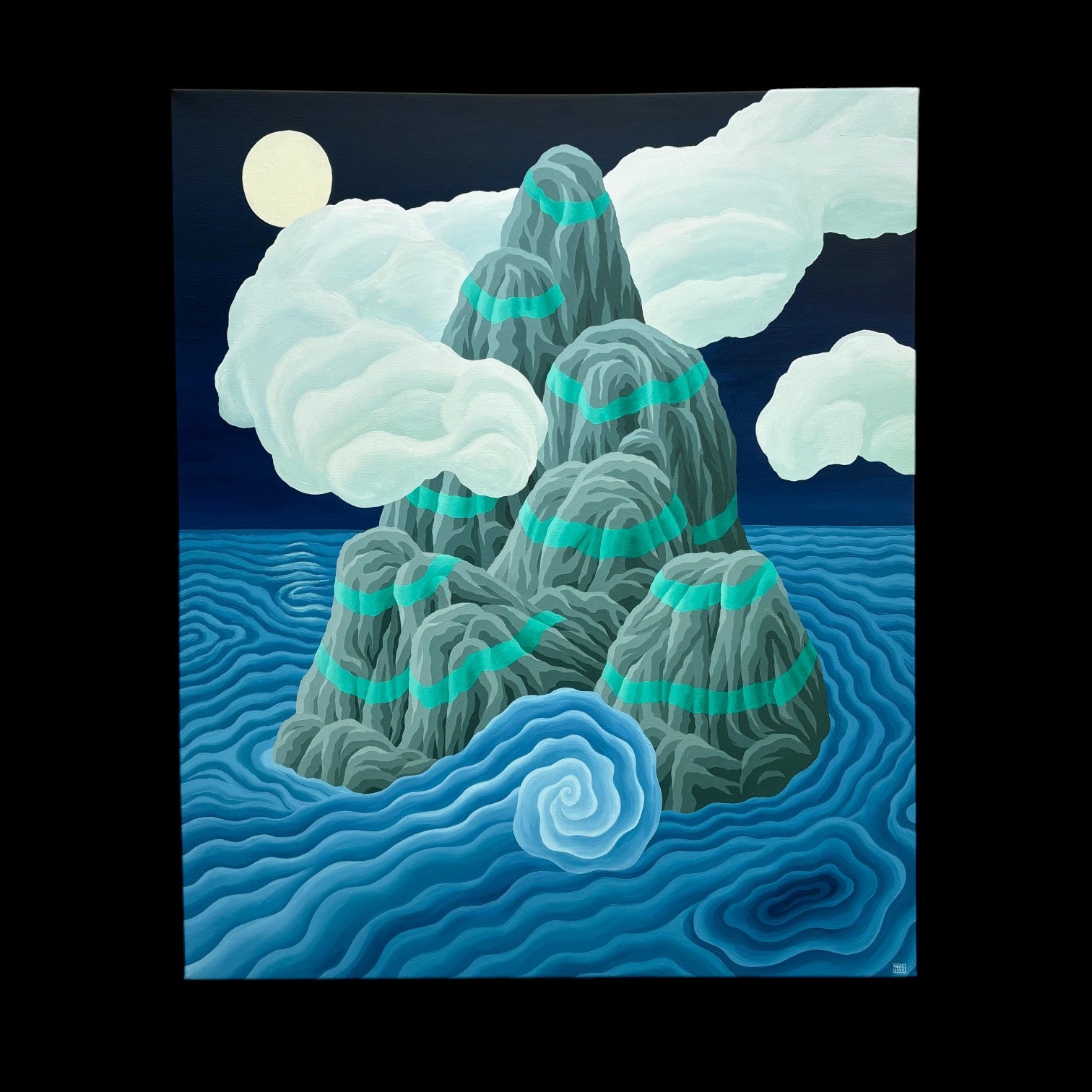 Michael Yaikel - Óleo sobre tela 'Roca y mar'