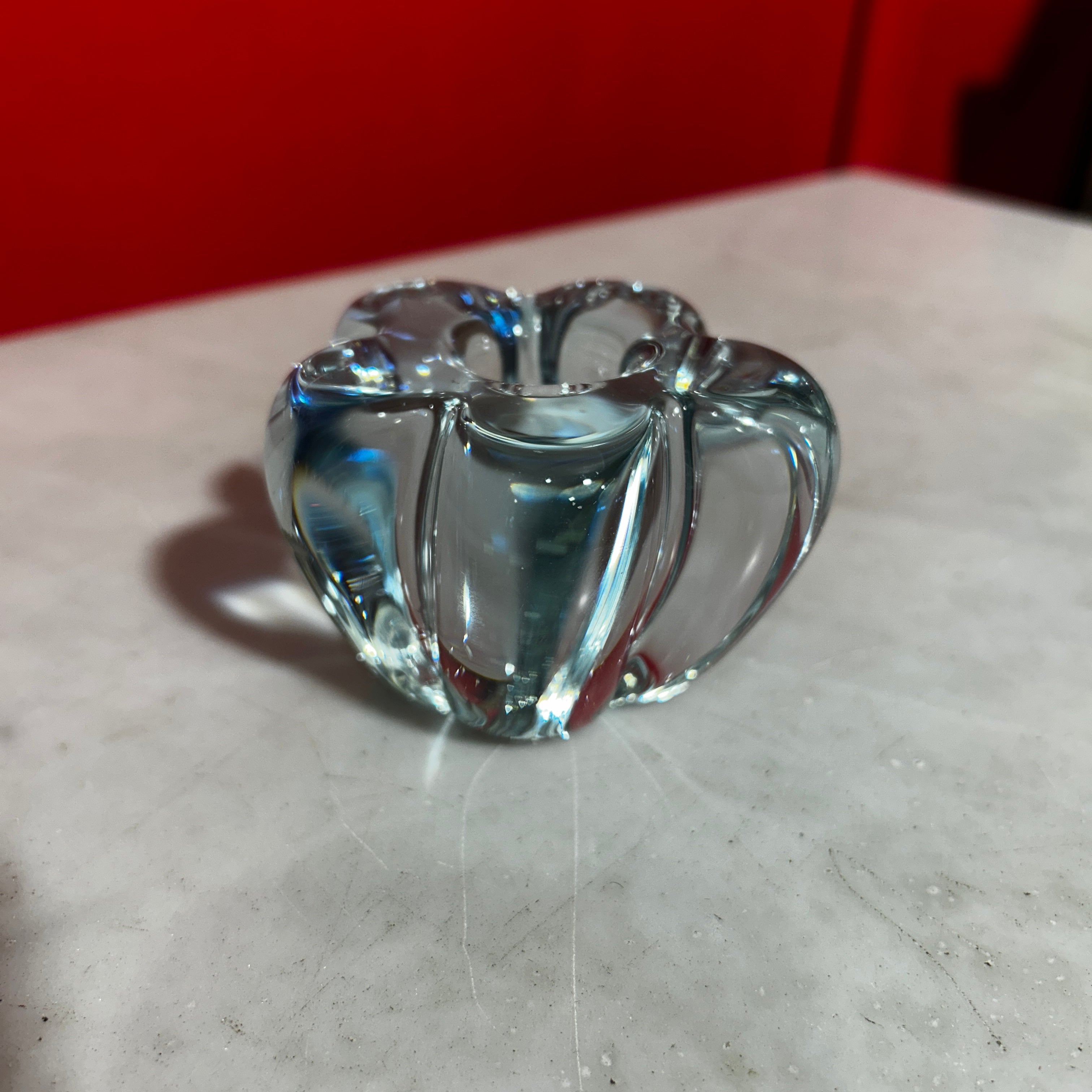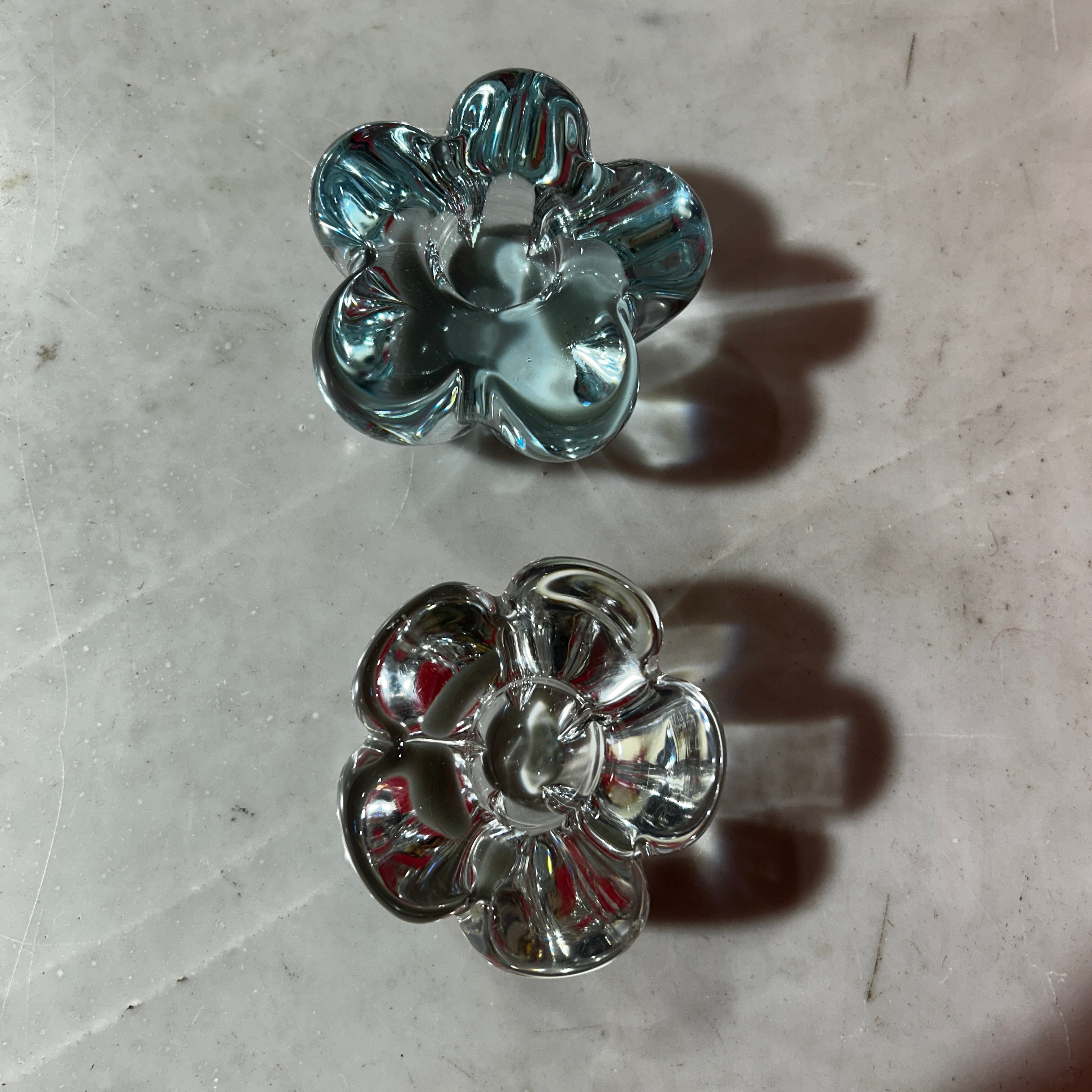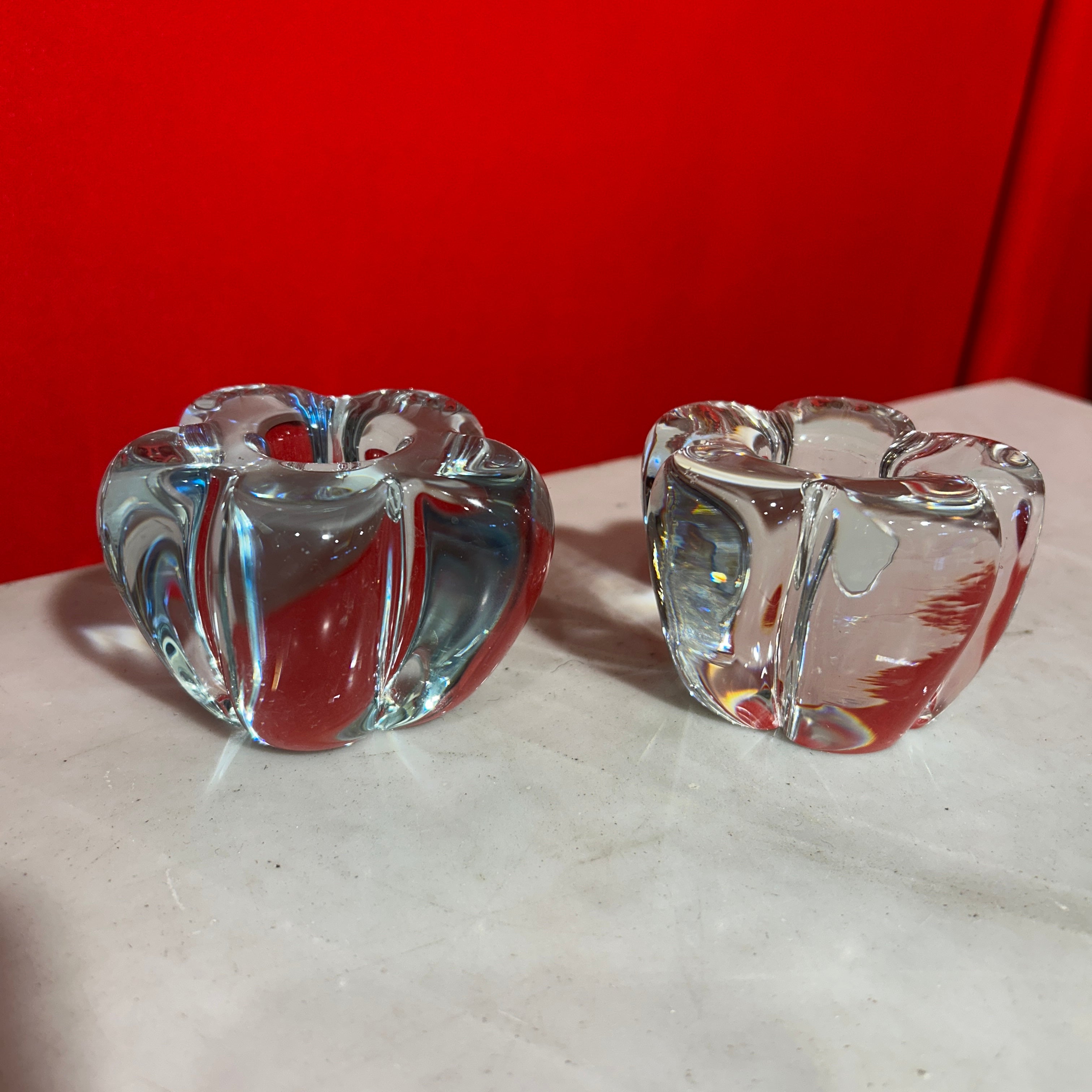 Precioso par de portavelas francés de cristal Daum en una hermosa forma de flor de loto.