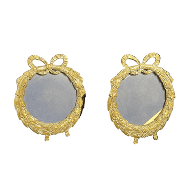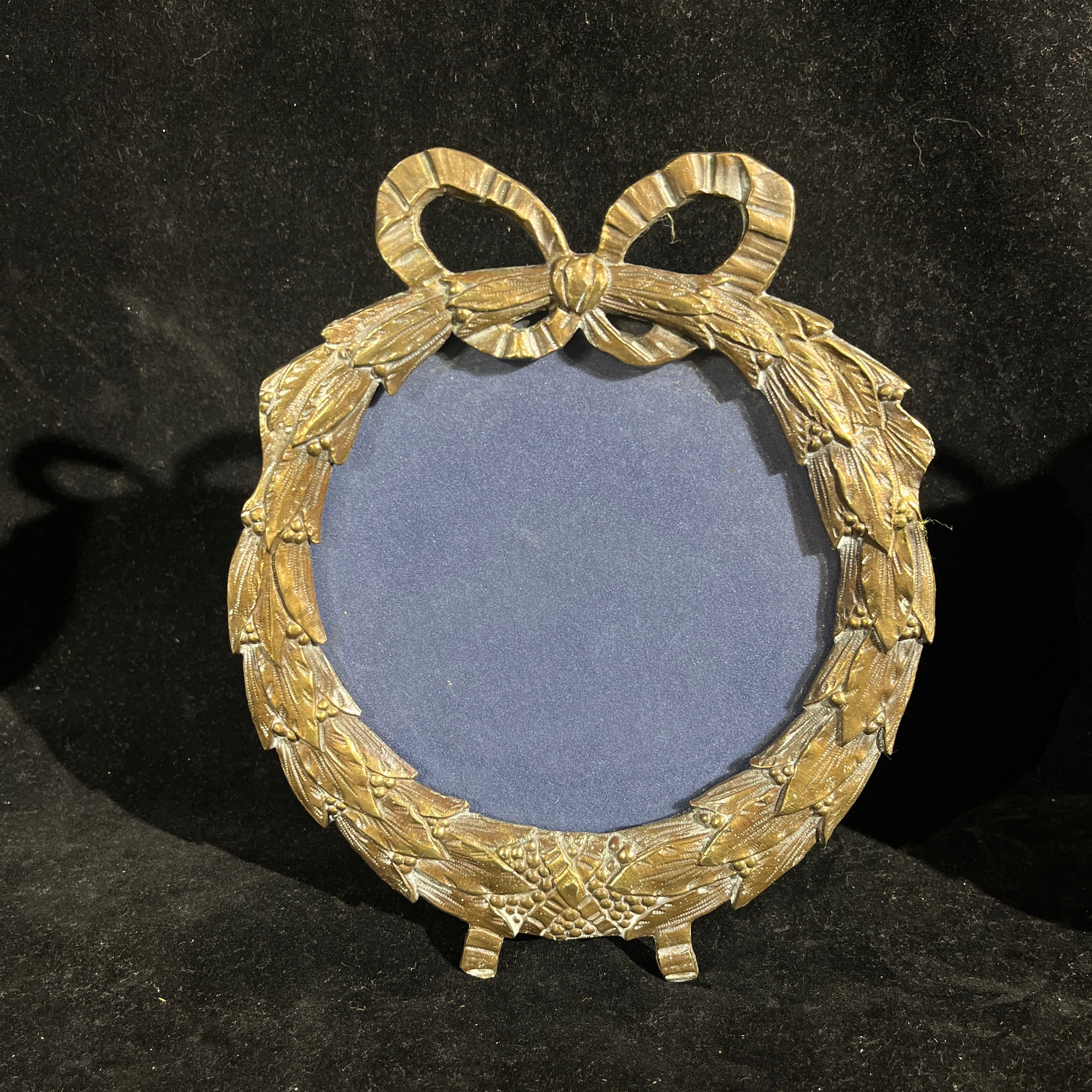 Portarretratos circulares en bronce diseño de guirnalda y cinto