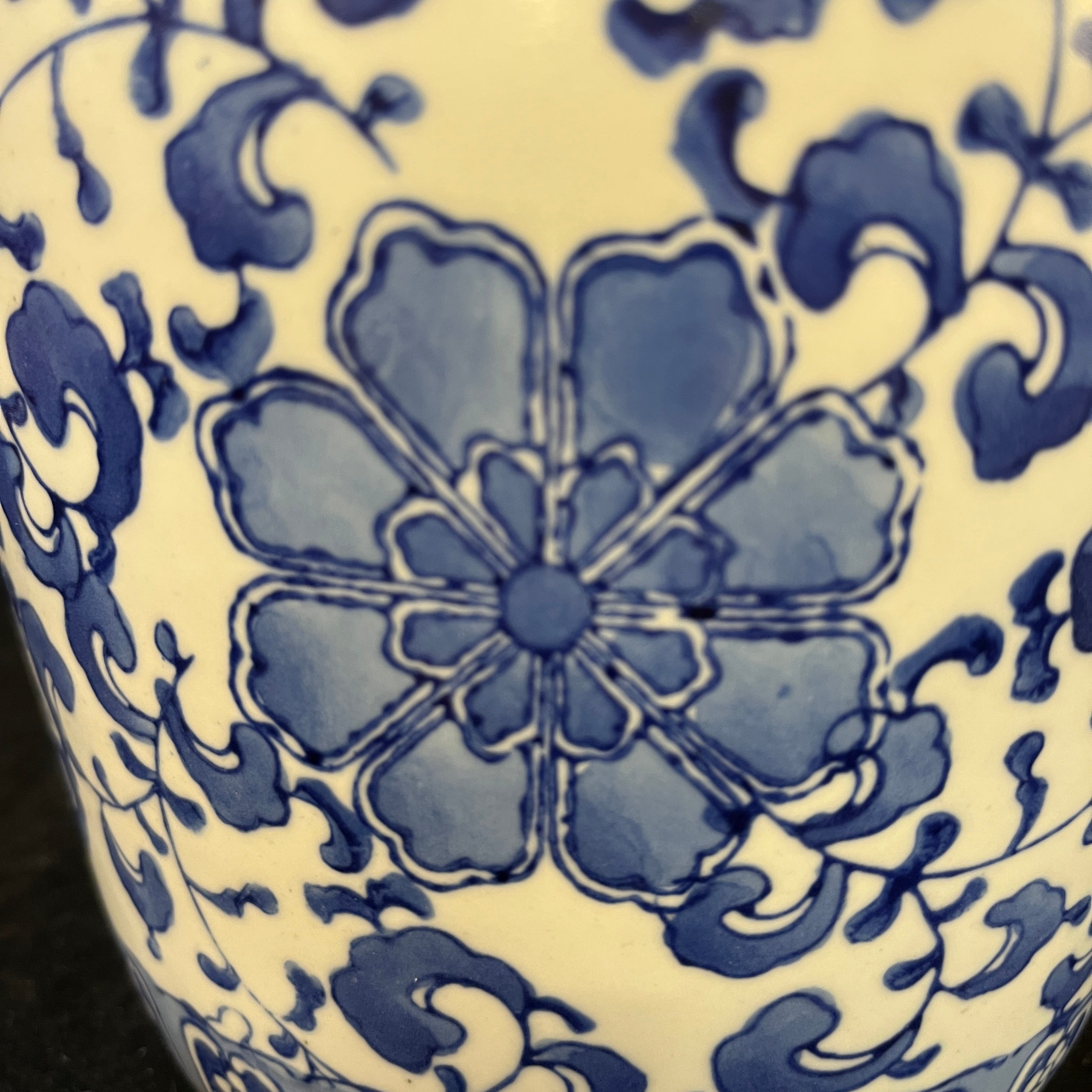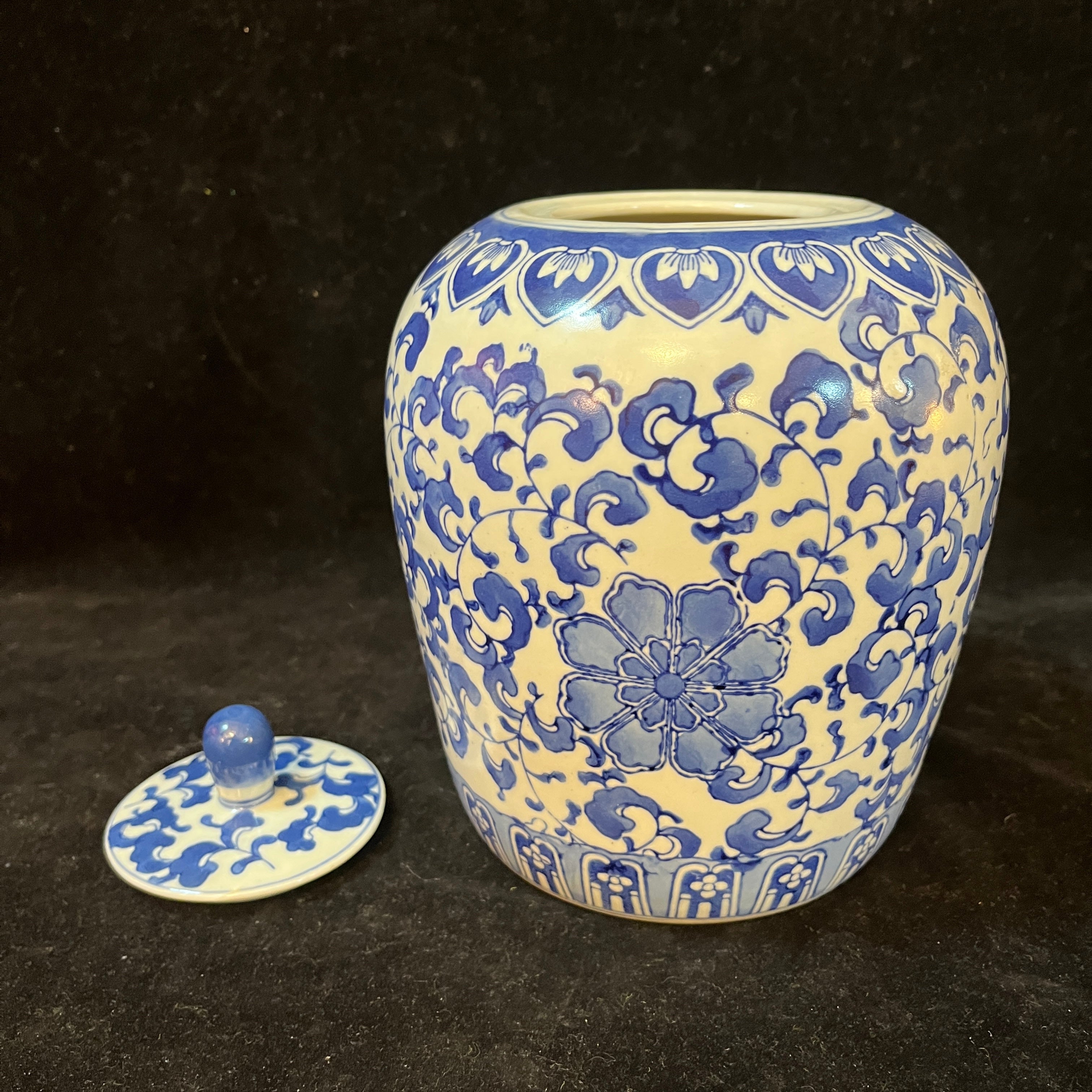 Beautiful Chinese porcelain pot with a floral pattern. It comes with its original lid and bears the manufacturer's seal on the base.