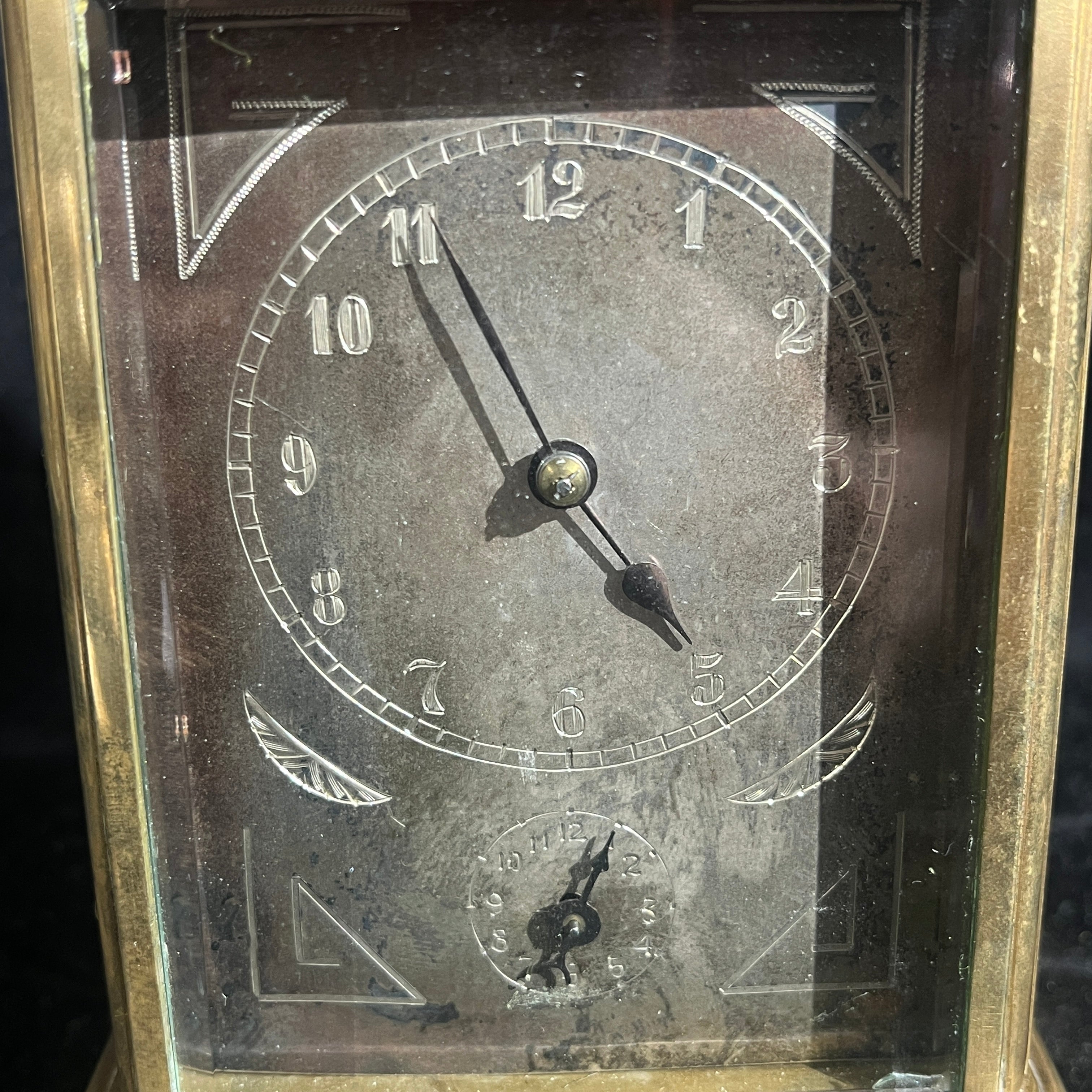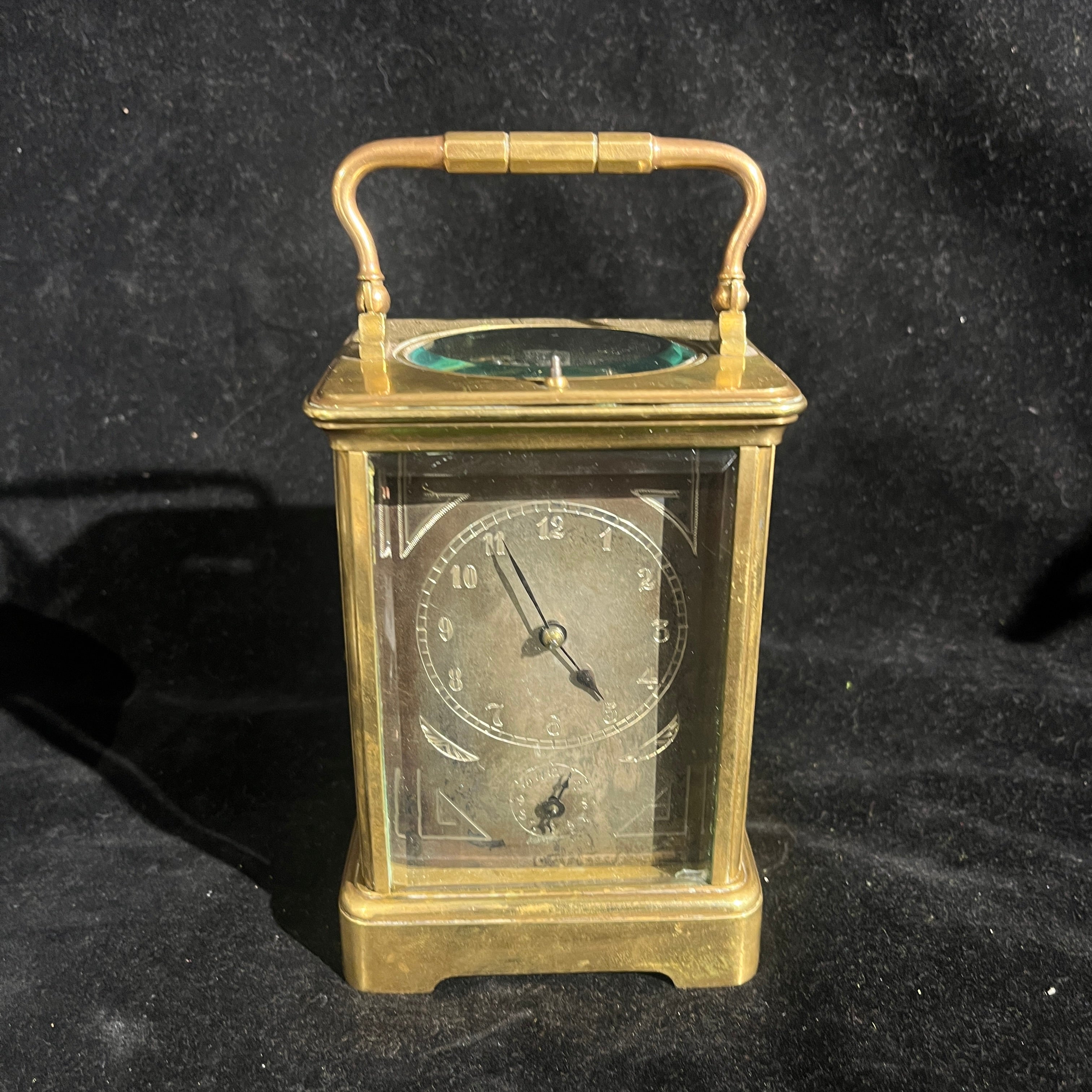 Reloj francés de carruaje en bronce dorado y vidrios biselados s.XIX